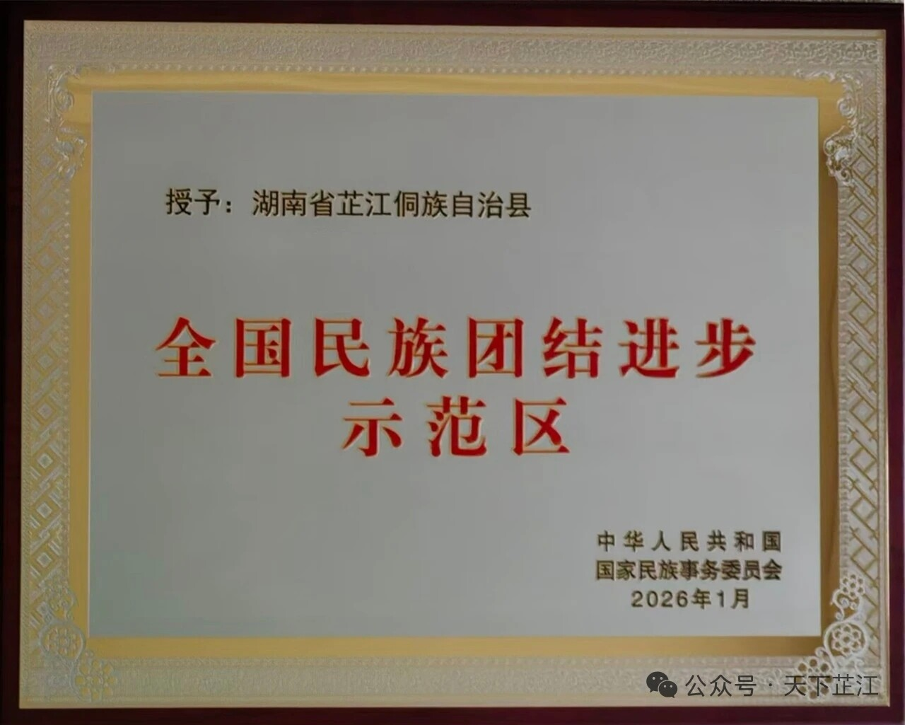 1月29日,全国民委主任会议在北京召开。中央统战部副部长、国家民委主任陈瑞峰出席会议并讲话。会议宣读了关于命名第十二批全国民族团结进步示范区示范单位的决定。芷江侗族自治县委书记梁志平接受全国民族团结进步示范区授牌。