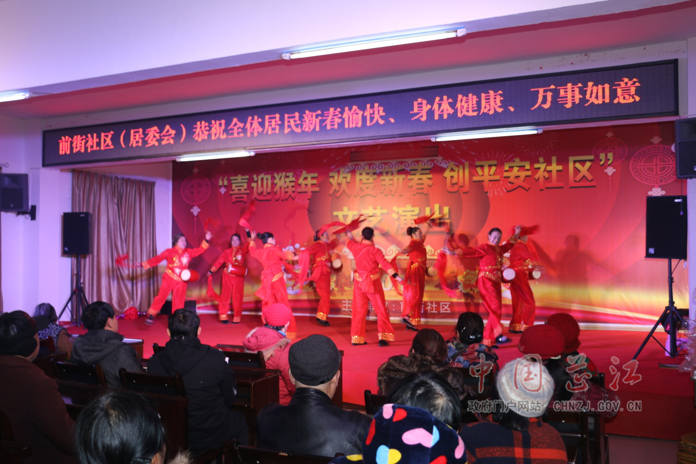 1月25日上午10点,芷江镇人民政府五楼大会议室座无虚席,但今天这里其实不应该叫会议室,而应该叫小剧院,原来芷江镇前街社区今天在这里举行“喜迎猴年 欢度新春 创平安社区”文艺演出。