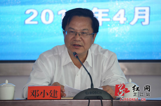 邓小建在会上作讲话。邓小建强调,全市农村公路建设任务重、时间紧、要求高、资金缺,要全力推进怀化市的农村公路建设工作必须要抓工作作风,根除急躁冒进情绪和浮躁的工作作风,真抓实干,以高标准推进工作落实,严格落实质量安全终身负责制,加强工程实体质量监督;要多方筹措资金,统筹项目计划和资金安排,采取搭建融资平台、银行贷、县市区财政配、群众筹、鼓励企业、单位和个人捐款、农民投工投、支持采用PPP模式、利用冠名权、路边资源开发权、绿化权等多种办法筹措农村公路建设资金,努力开创全市公路建设的新局面,确保圆满完成今年农村公路建设各项目标任务。
