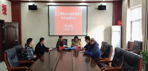 根据2020年6月4日第45次《芷江侗族自治县人民政府常务会议纪要》精神,同意依法依规将县域内天然气特许经营权授予县城市建设投资开发有限责任公司子公司沅州新能源有限责任公司。根据《市政公用事业特许经营管理办法》和《湖南省燃气管理条例》、《湖南省市政公用事业特许经营条例》要求,2020年10月23日上午8时许,芷江县住建局党组书记、局长谭小强与芷江沅州新能源有限责任公司经理杨婷分别代表授权方和被授权方依法履行签约。