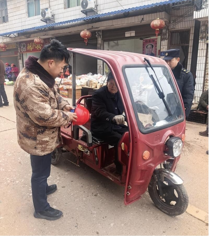 赶集日里话安全 水宽乡开展“一盔一带”劝导