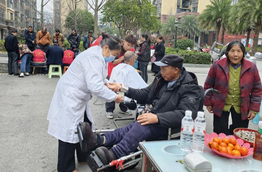 活动现场设置了多个服务点,吸引了不少居民前来参与。在健康服务区,有专业医护人员为社区老年人提供免费血压测量服务,针对冬季高发疾病、老年慢性病防治等问题耐心解答健康疑问,帮助老人们更好地关注自身健康。一位刚测完血压的杨大爷高兴地说:“这样的活动太贴心了,在家门口就能享受到健康服务,真是暖到心里。”
