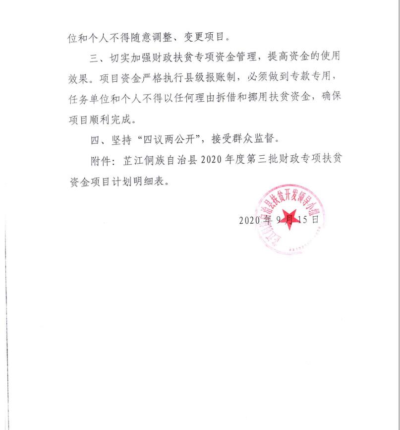 关于芷江侗族自治县2020年度第三批财政专项扶贫资金项目计划进行公示的公告