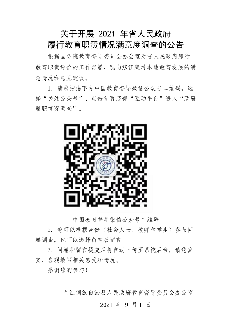关于开展2021年省人民政府履行教育职责情况满意度调查的公告