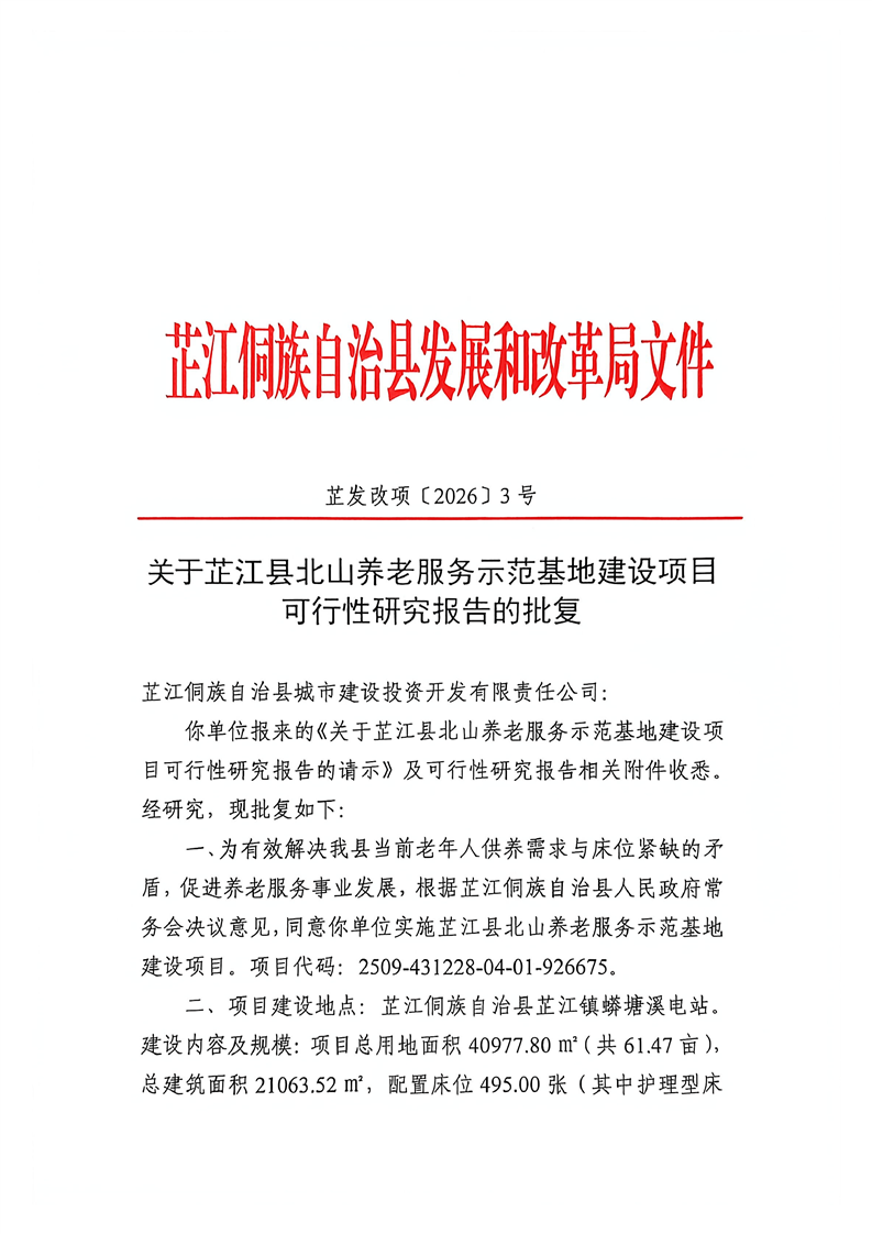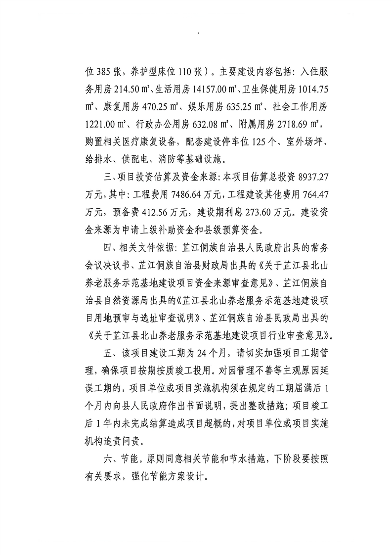 芷江县北山养老服务示范基地建设项目可行性研究报告的批复
