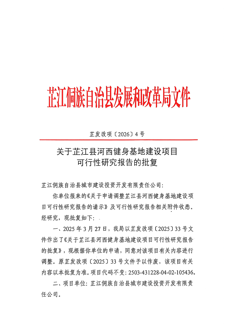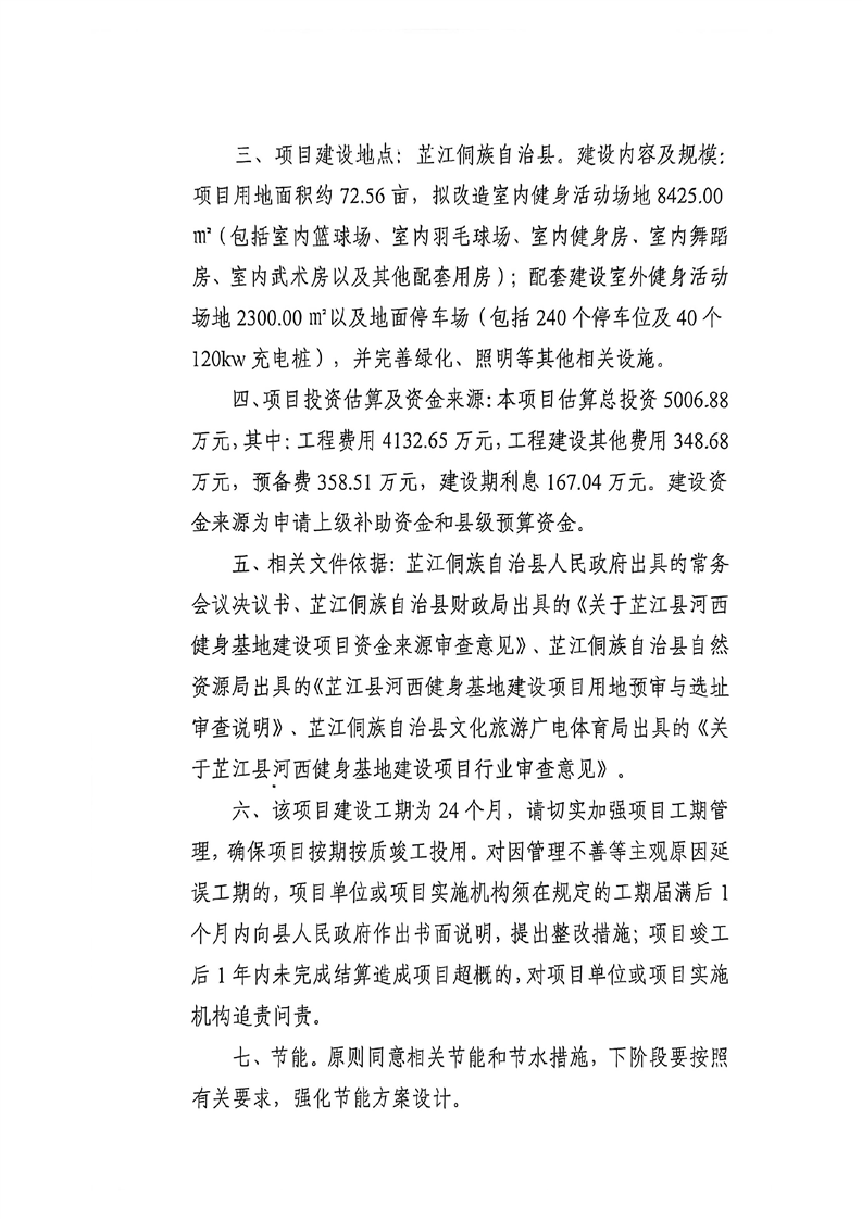 芷江县河西健身基地建设项目可行性研究报告的批复