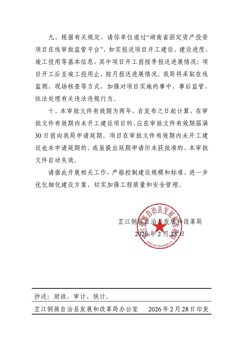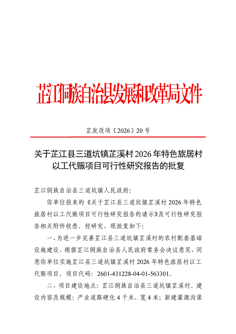 关于芷江县三道坑镇芷溪村2026年特色旅居村以工代赈项目可行性研究报告的批复