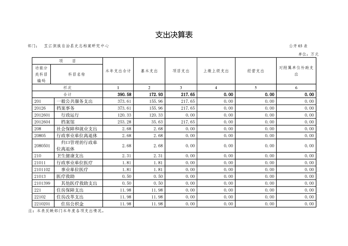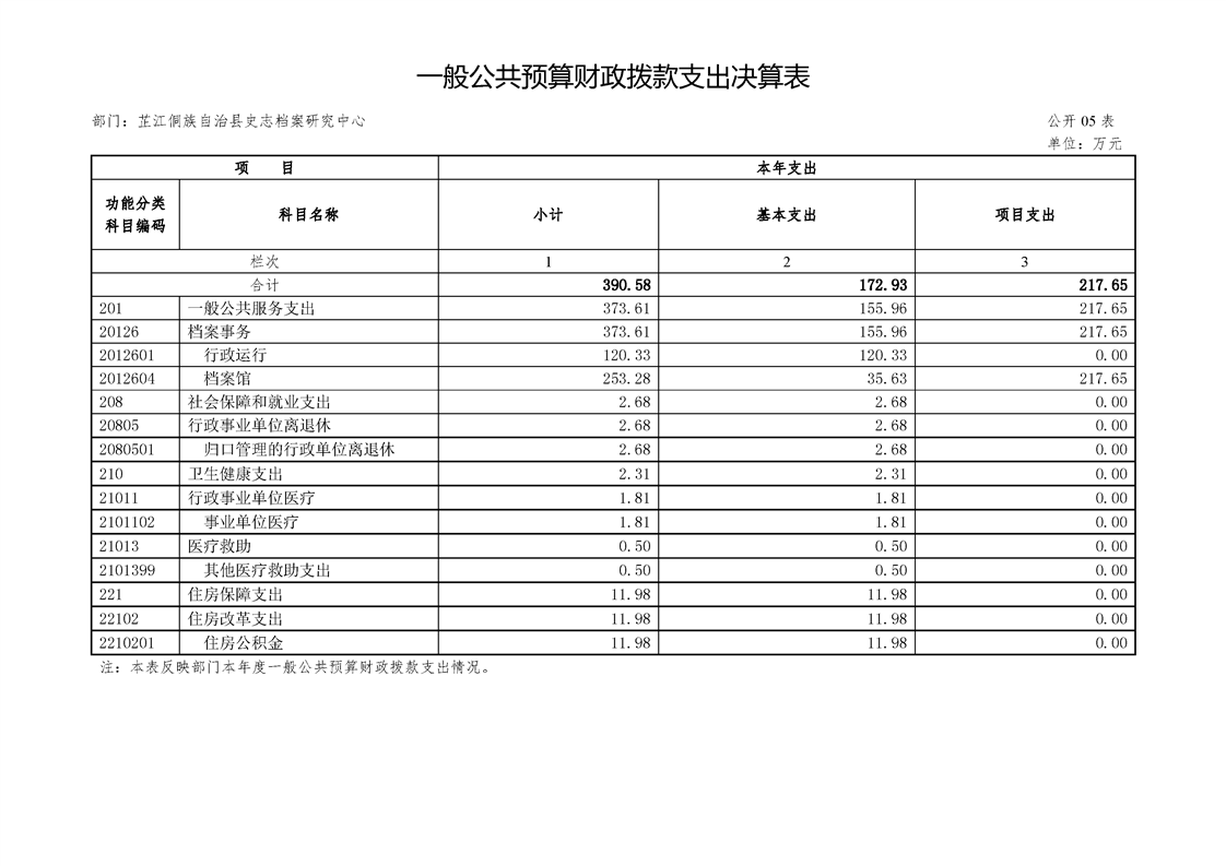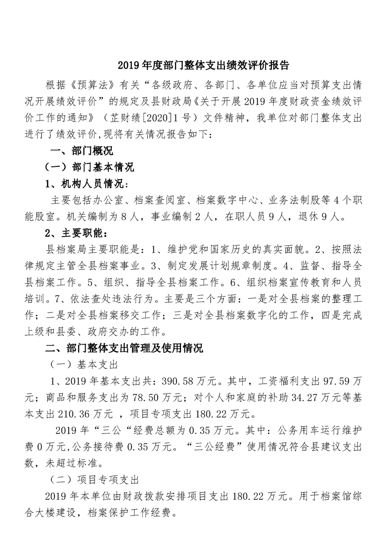 芷江侗族自治县档案局2019年度部门决算