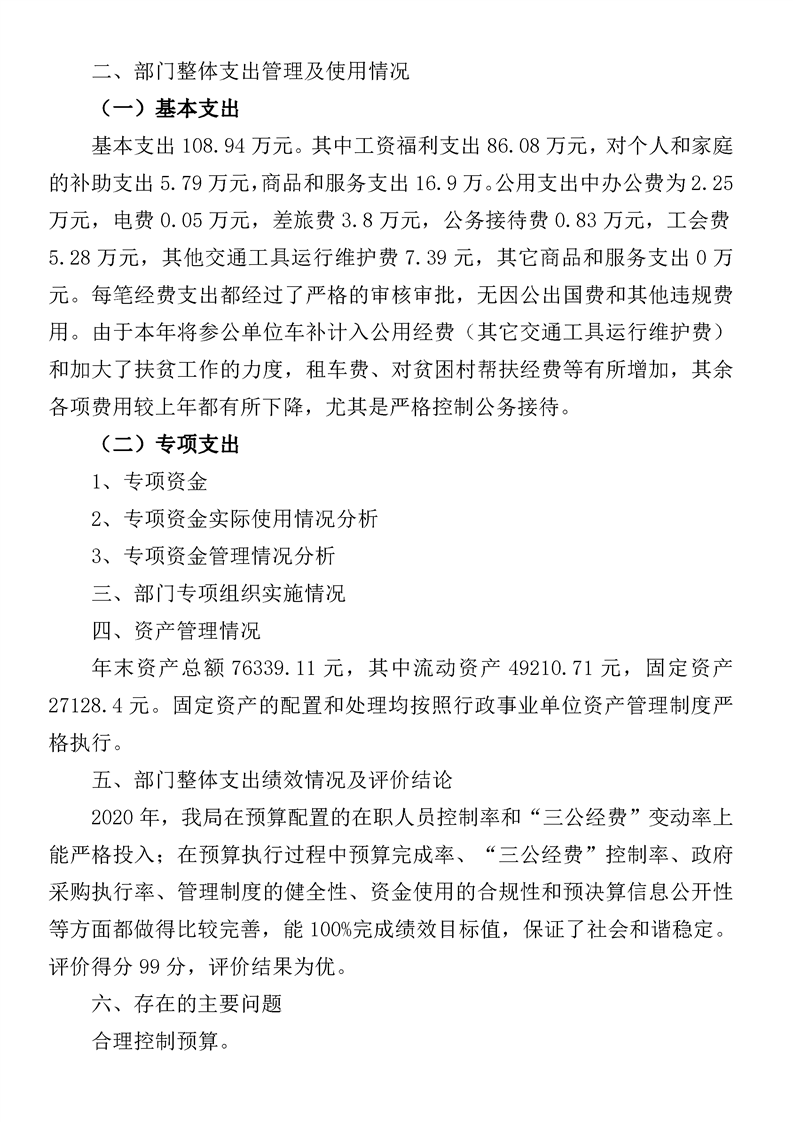 芷江县工伤保险服务中心2020年度部门决算公开