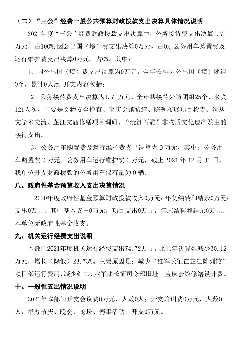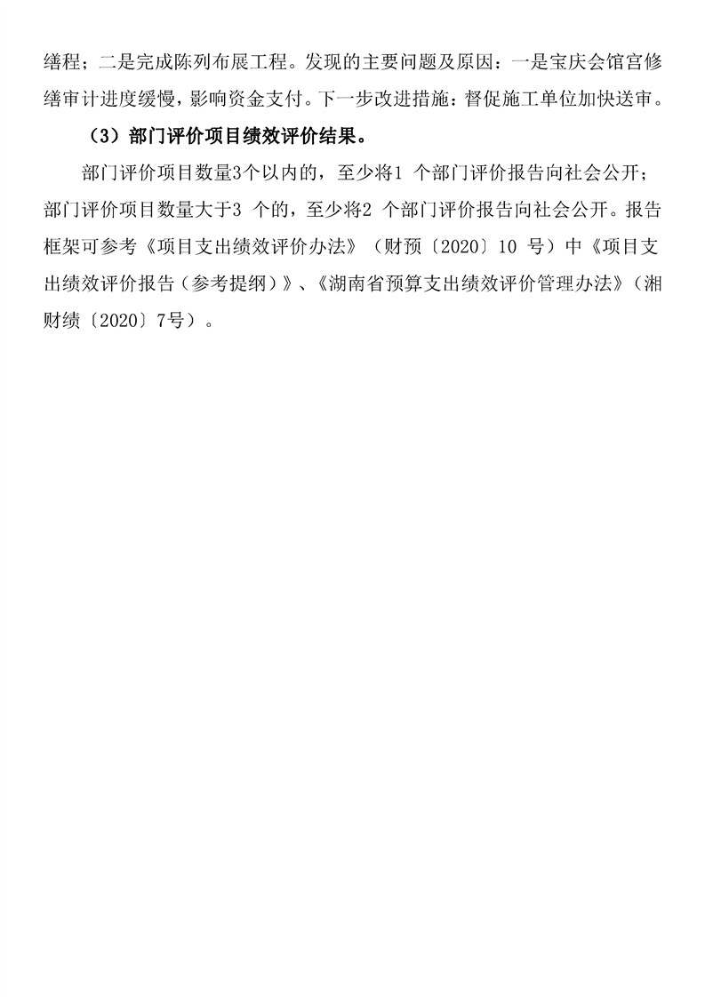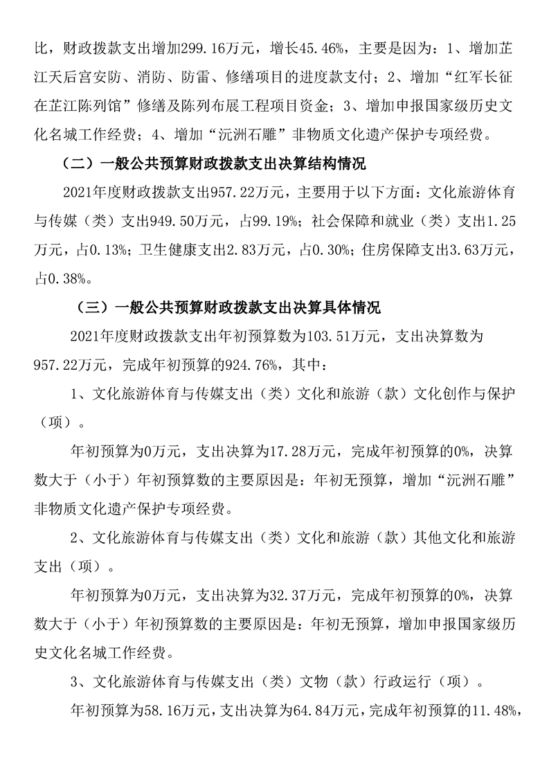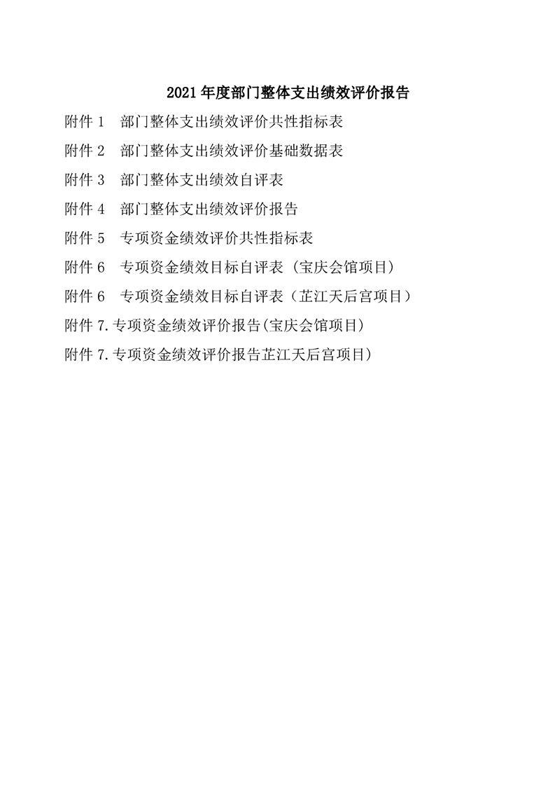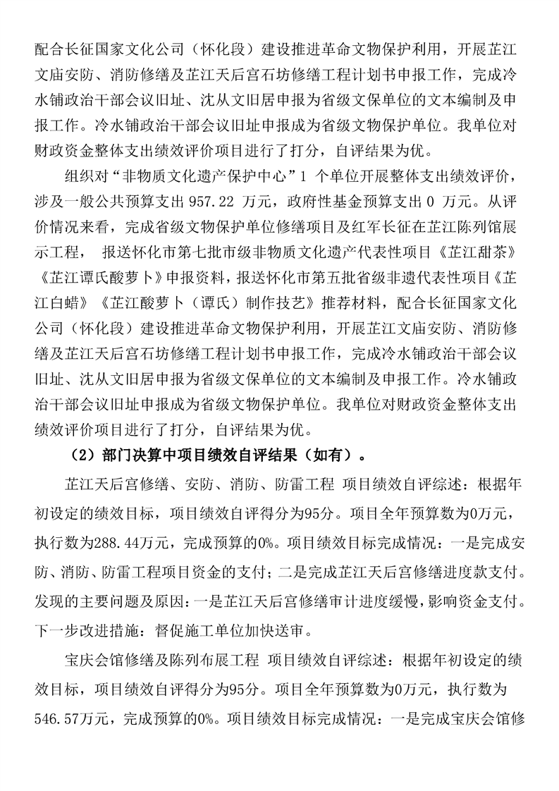 2021年度非物质文化遗产保护中心部门部门决算 芷江侗族自治县人民政府 发布时间: 2022-09-28 15:59 相关附件附件1部门整体支出绩效评价共性指标表.doc 附件2 部门整体支出绩效评价基础数据表.docx 附件3部门整体支出绩效自评表.doc 附件4.部门整体支出绩自评效评价报告.doc 附件5.专项资金绩效评价共性指标表.doc 附件6:专项资金绩效目标自评表 (宝庆会馆).doc 附件7.专项资金绩效自评报告(宝庆会馆项目).doc 附件6:专项资金绩效目标自评表(芷江天后宫).doc 附件7.专项资金绩效自评报告芷江天后宫项目).doc 分享到 打印 来源:芷江县财政局