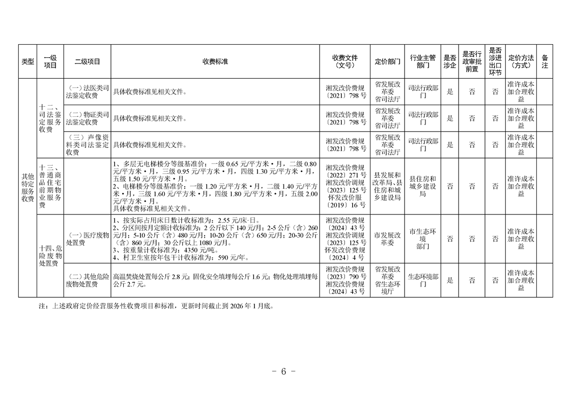 芷江侗族自治县发展和改革局关于公布2026版芷江县政府定价的经营服务性收费目录清单的公告