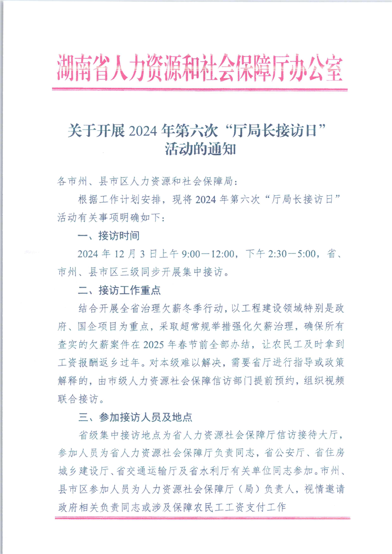 关于开展2024年第六次“厅局长接访日“活动的通知