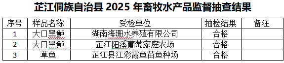 芷江侗族自治县农业农村局关于2025年畜牧水产品监督抽查结果的公示