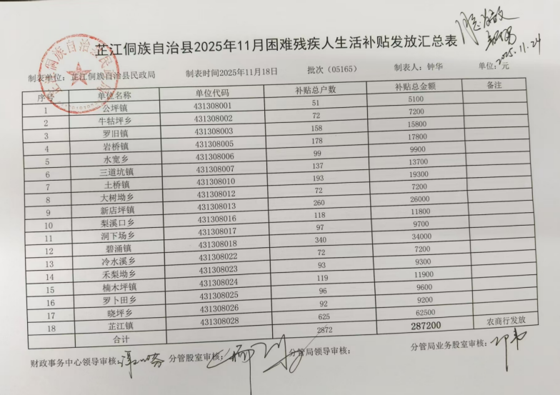 芷江侗族自治县民政局2025年残疾人两项补贴4发放公示