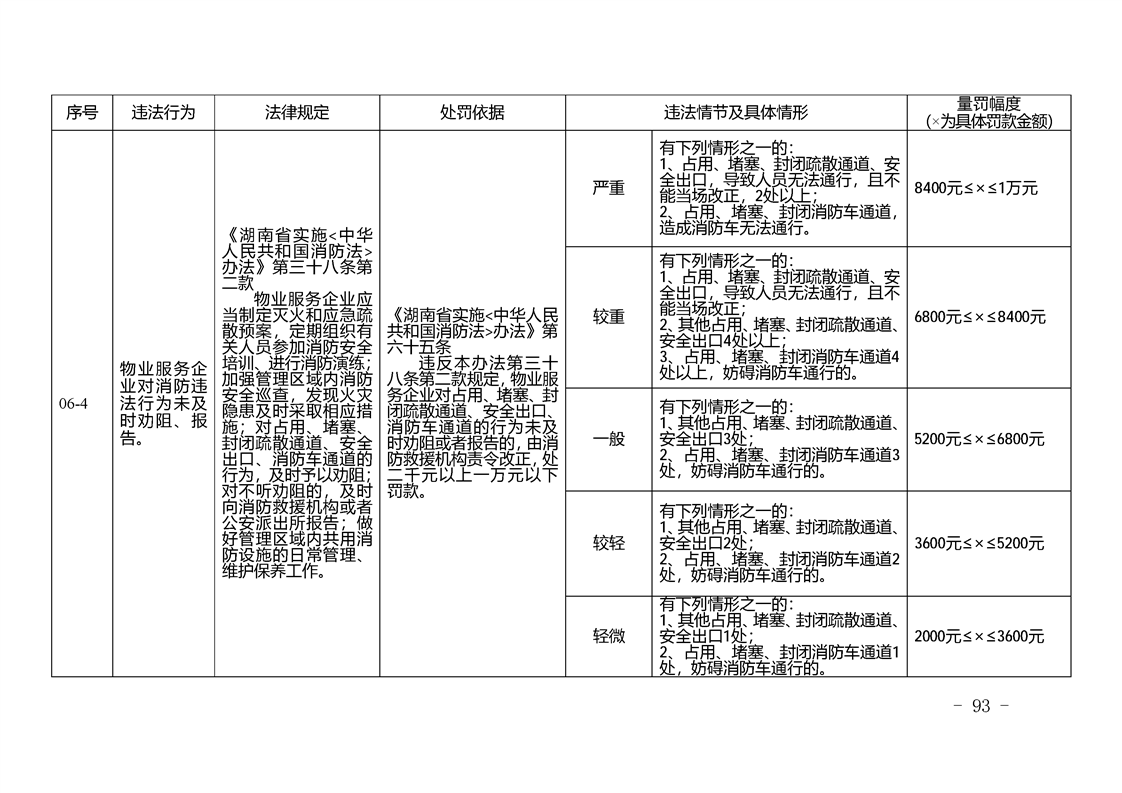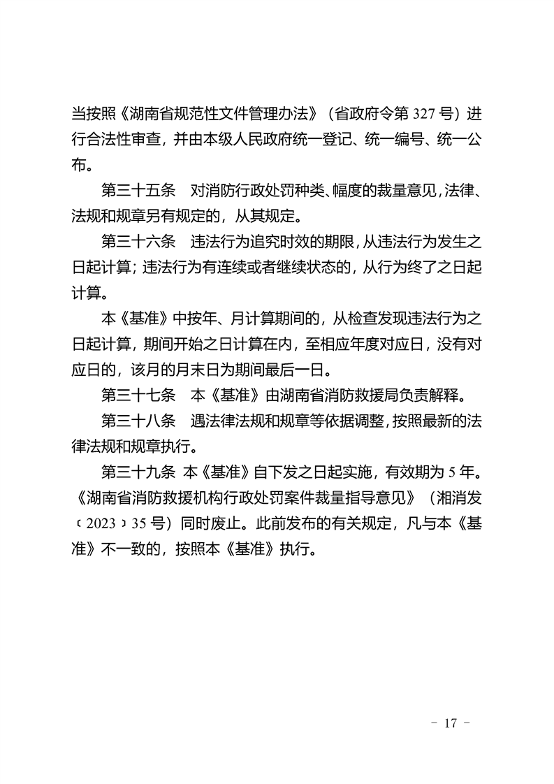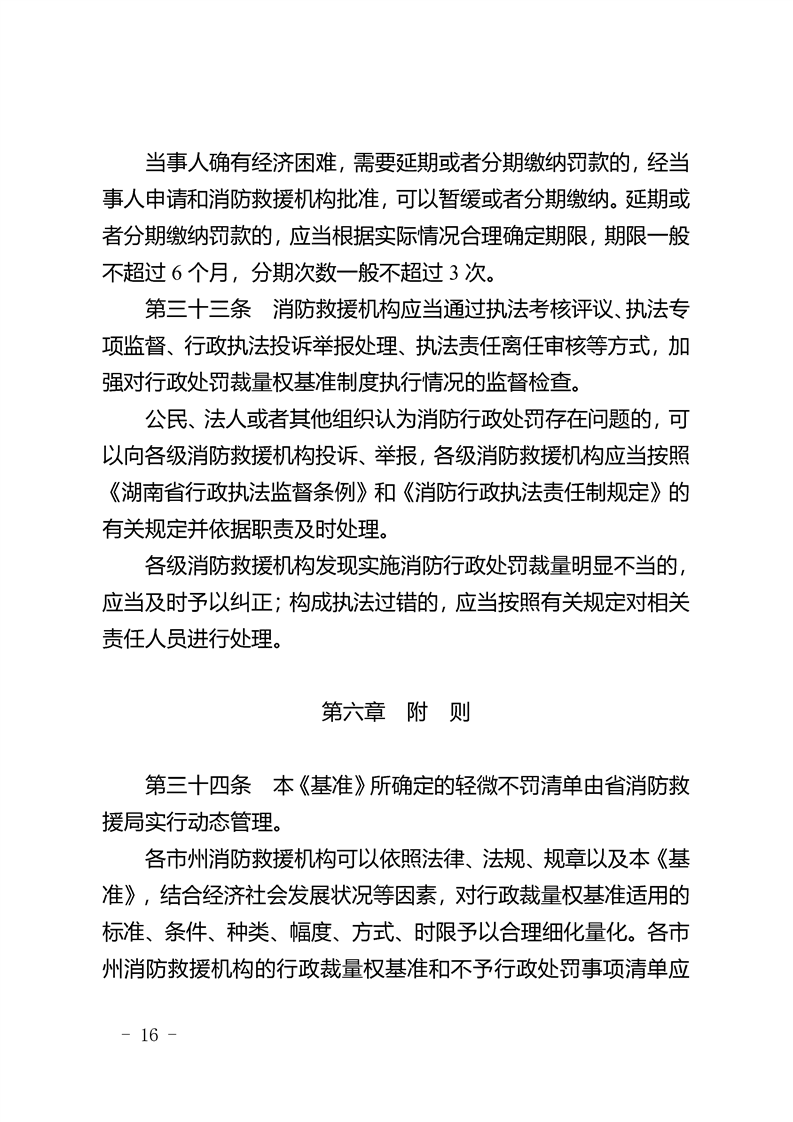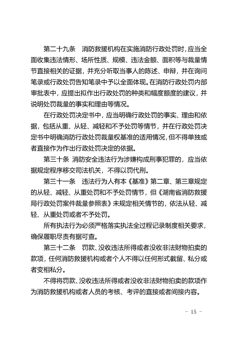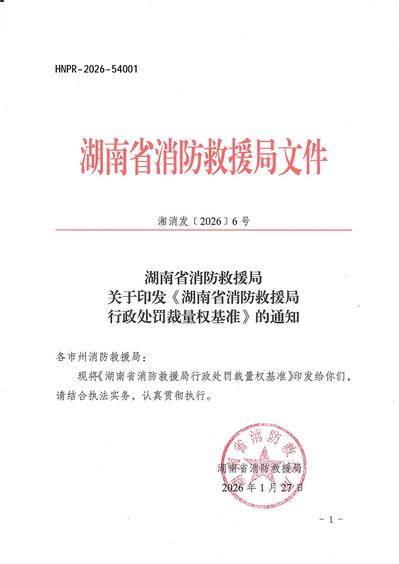 湖南省消防救援局关于印发《湖南省消防救援局行政处罚裁量权基准》的通知
