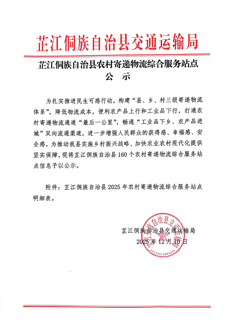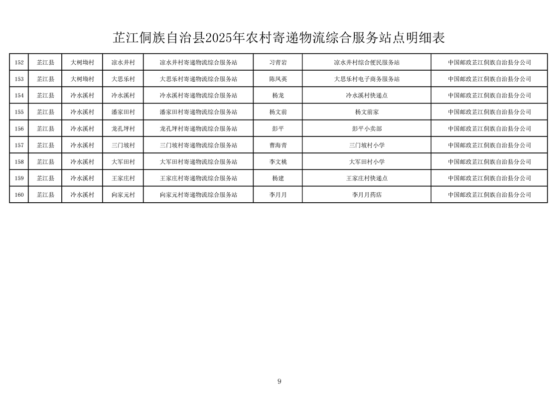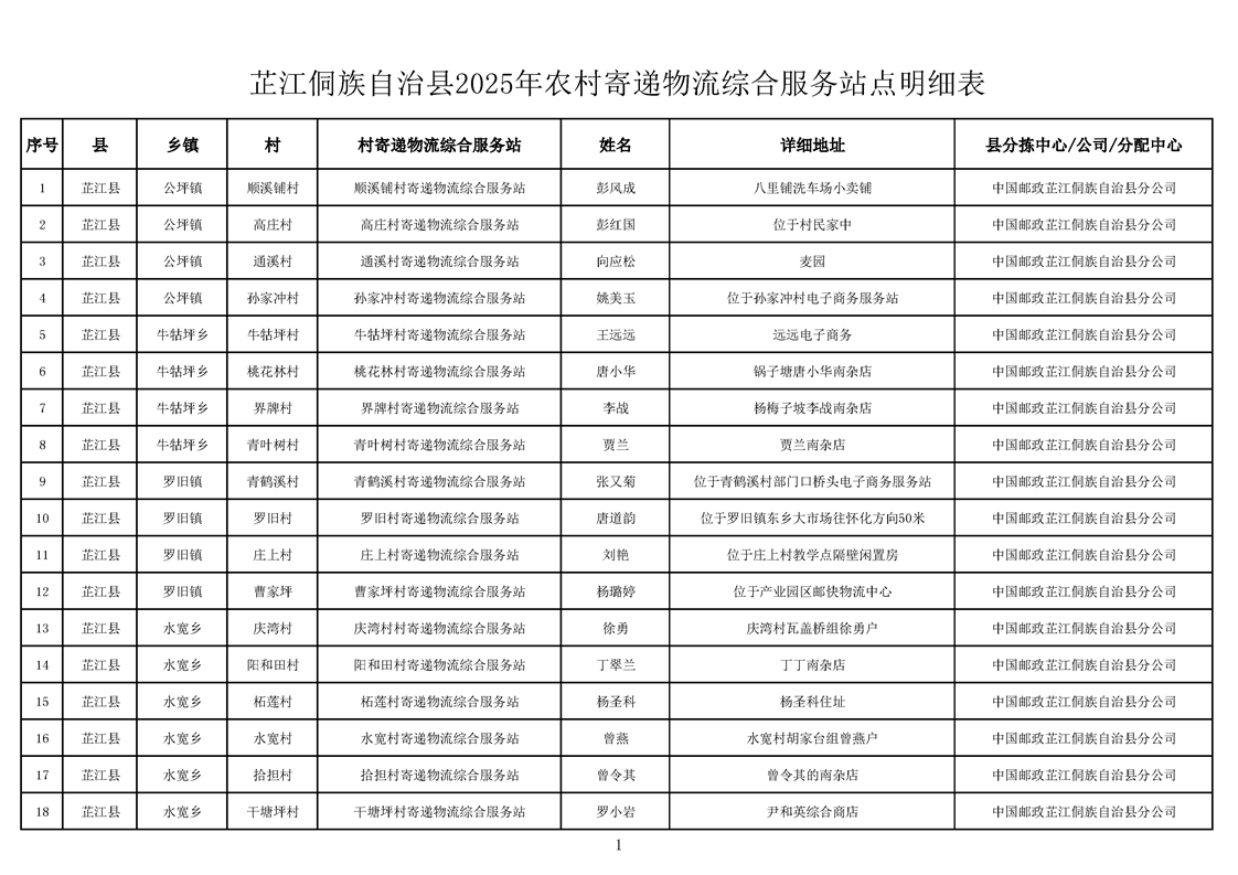 芷江侗族自治县农村寄递物流综合服务站点公示