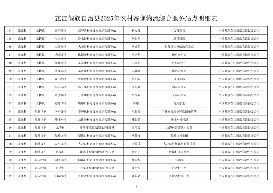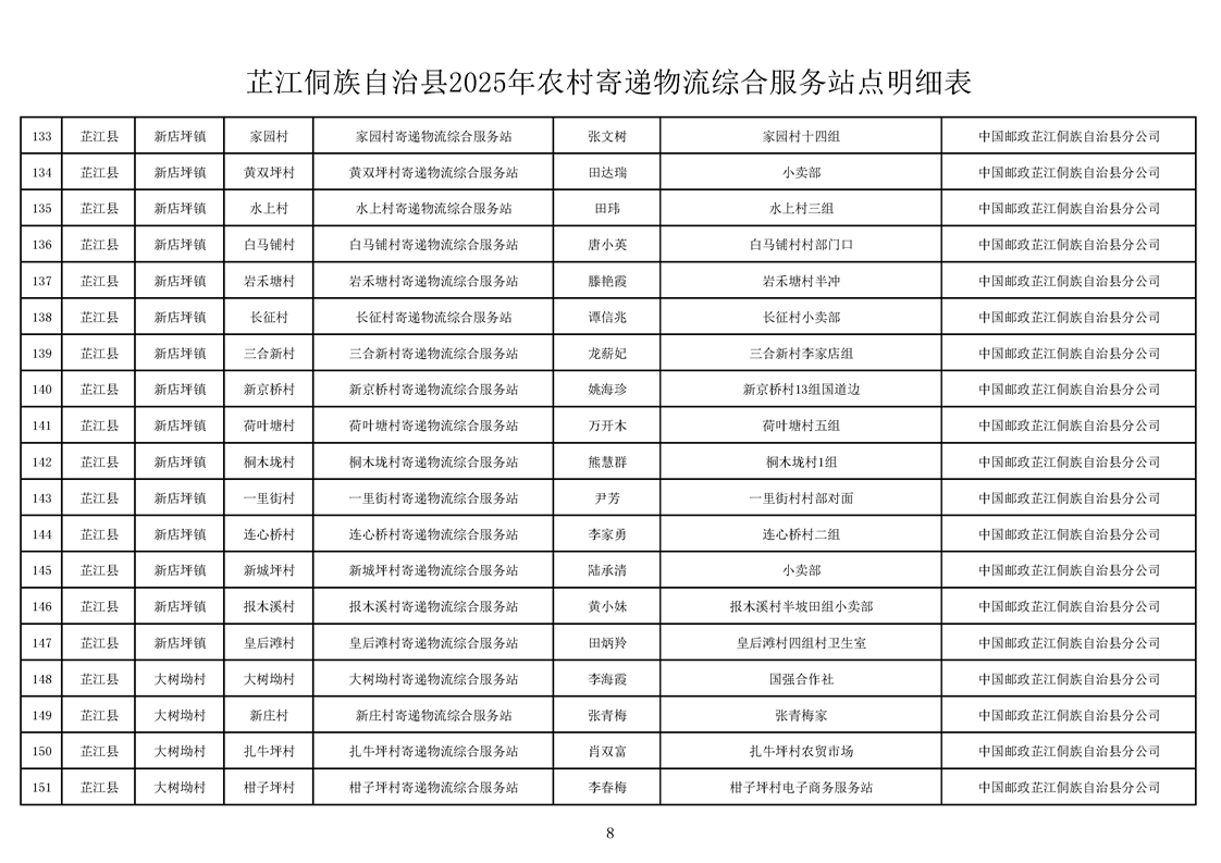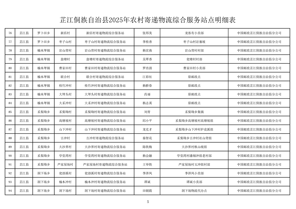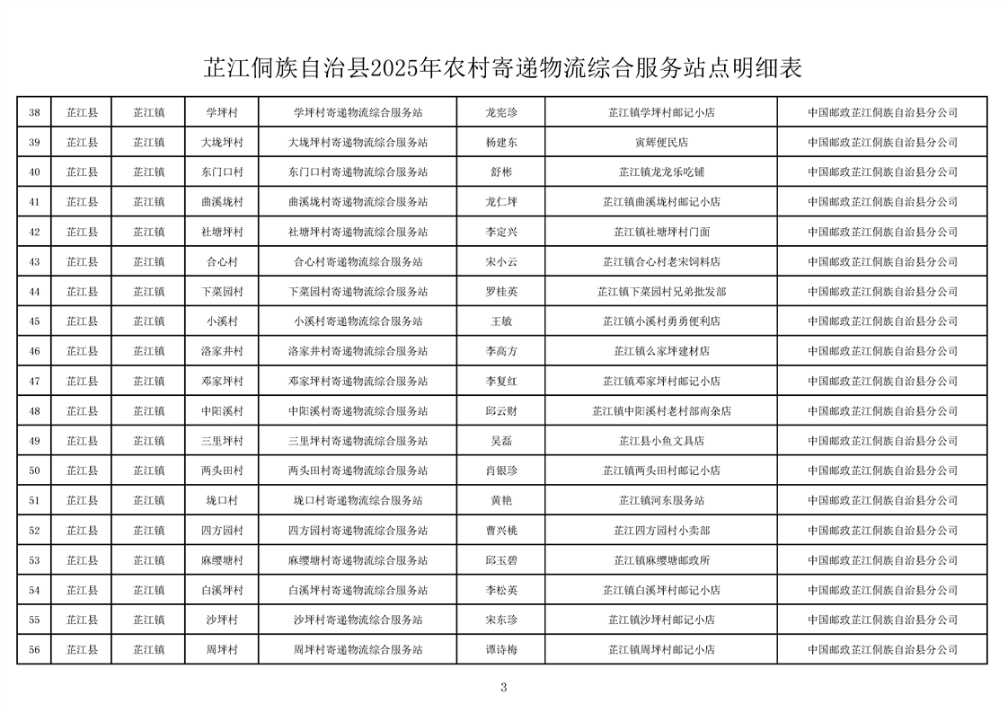 芷江侗族自治县农村寄递物流综合服务站点公示