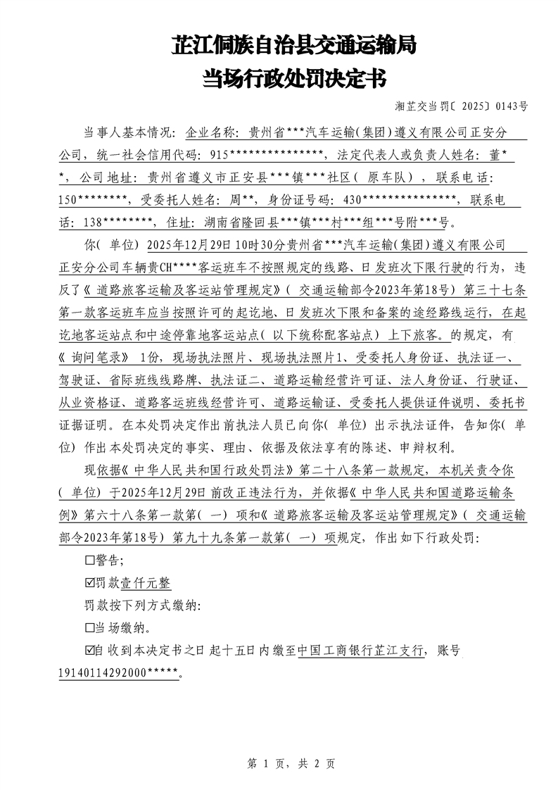 芷江侗族自治县交通运输局行政处罚决定书---湘芷交处罚〔2025〕0143号