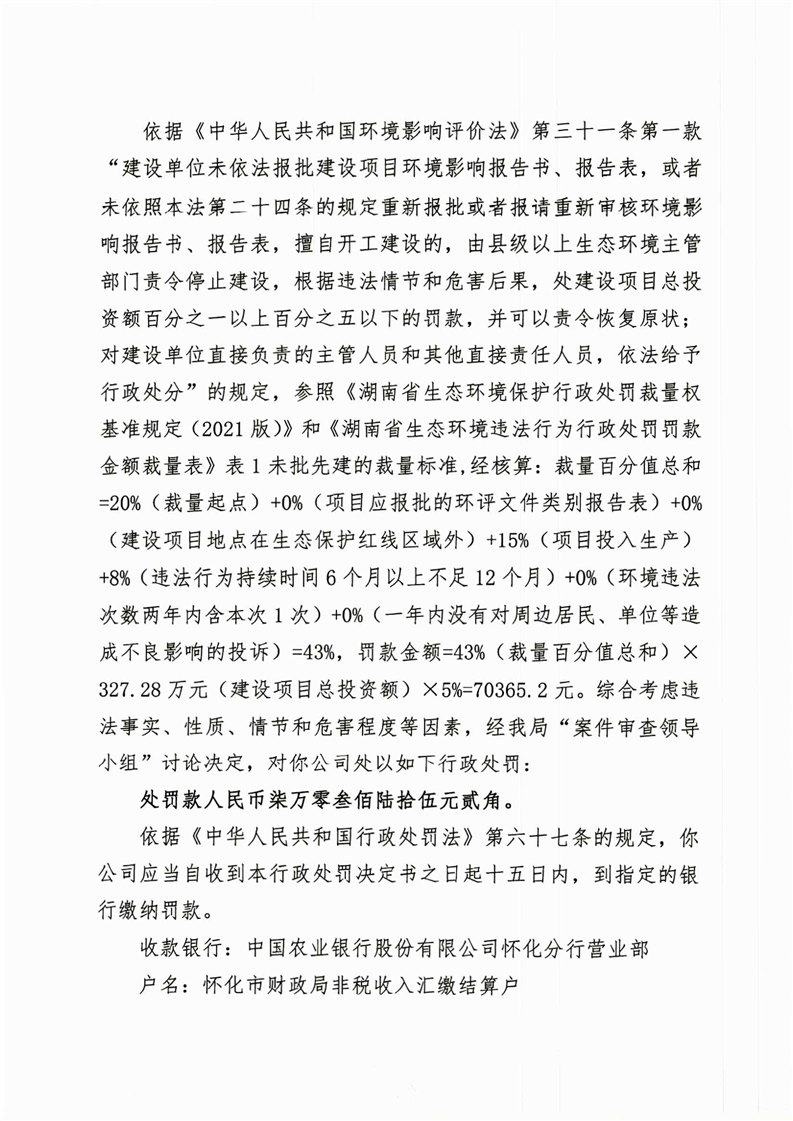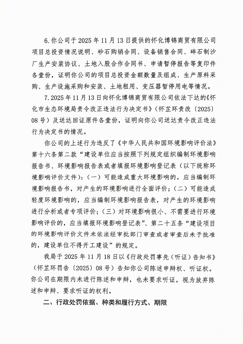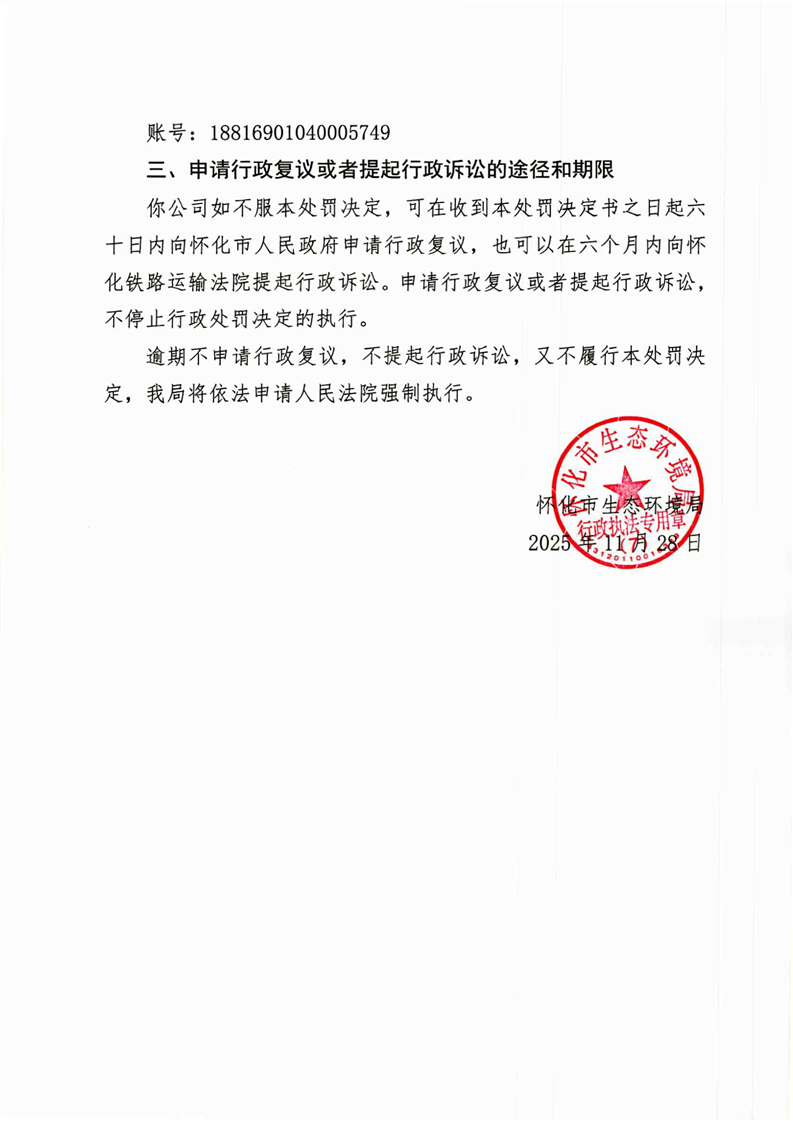 怀化市生态环境局行政处罚决定书——怀芷环罚〔2025〕08号