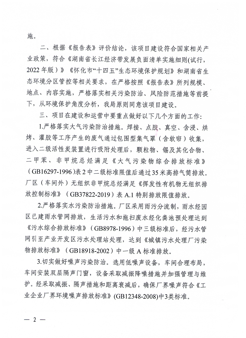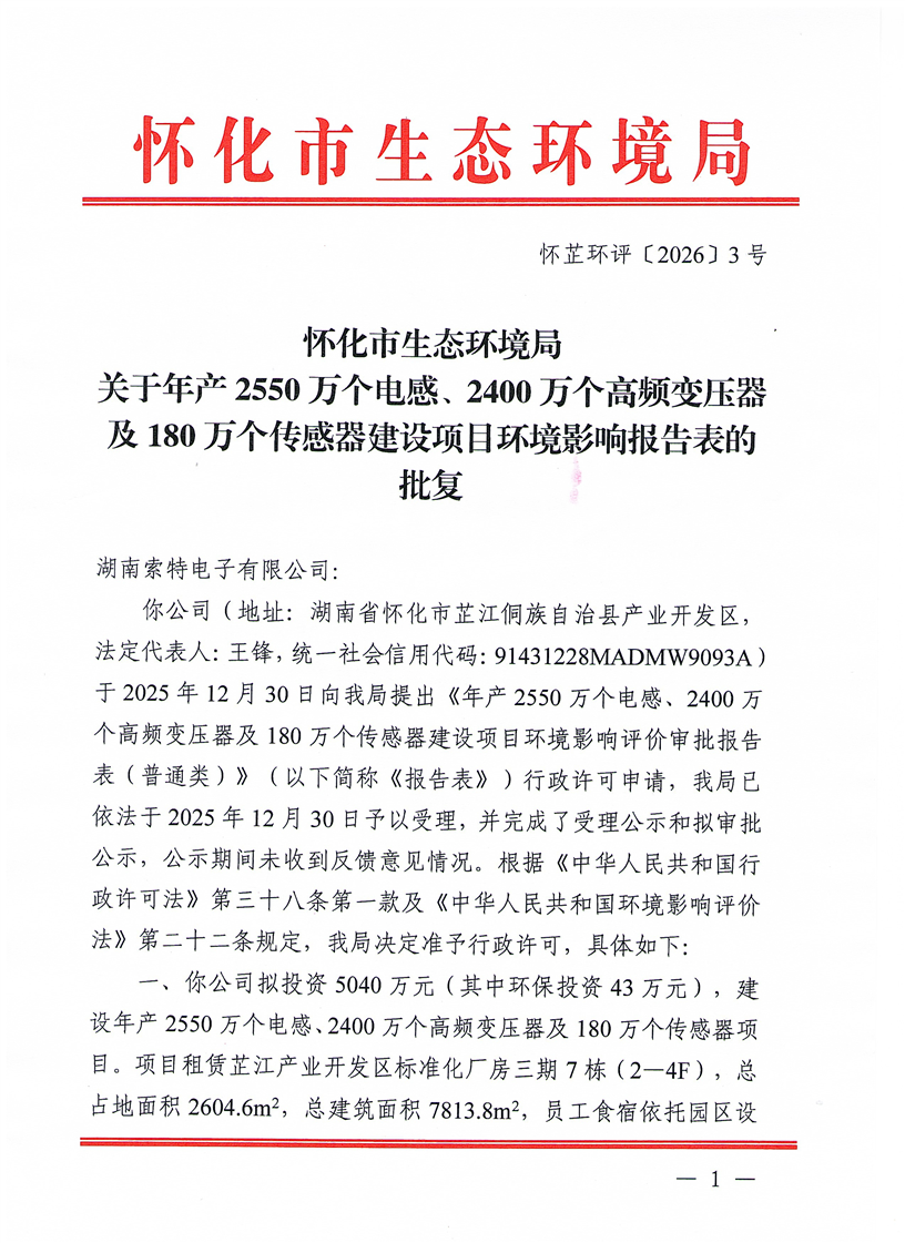《年产2550万个电感、2400万个高频变压器及180万个传感器建设项目》环境影响报告表批复