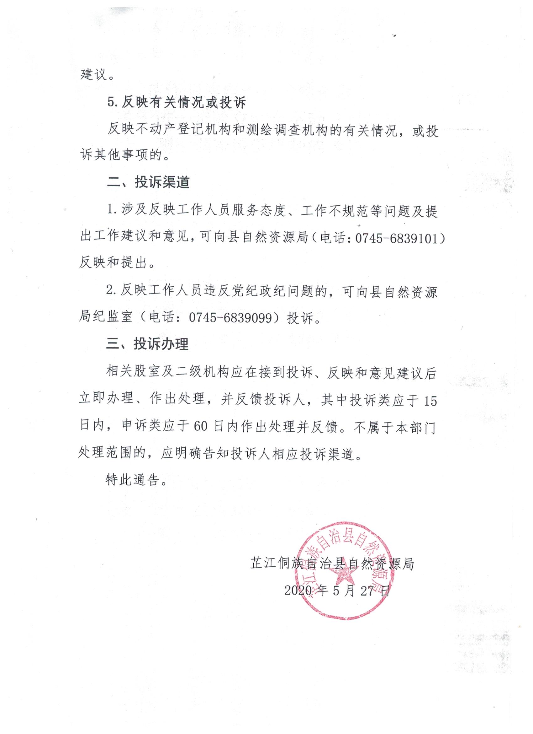 关于进一步建立健全不动产登记和测绘调查投诉机制的通告