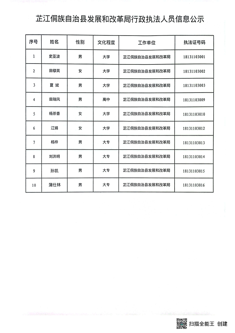 芷江侗族自治县发展和改革局行政执法人员信息公示