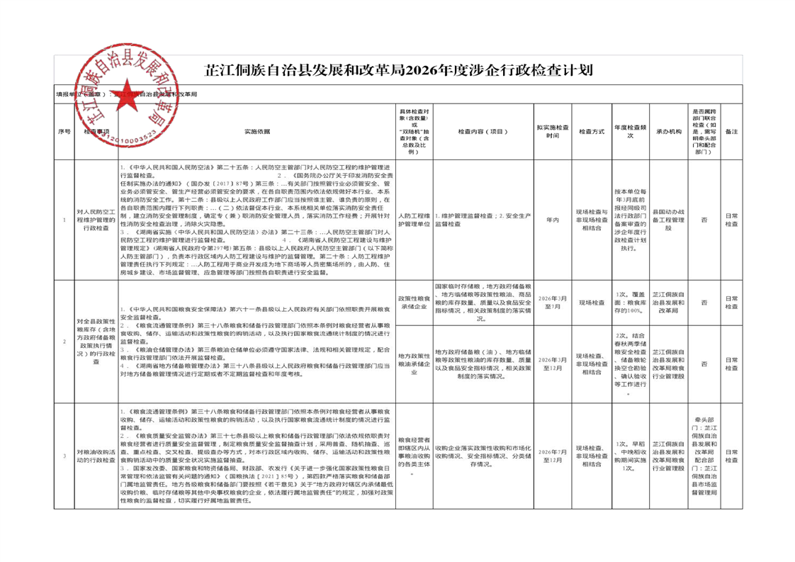 芷江侗族自治县发展和改革局2026年度涉企行政检查计划