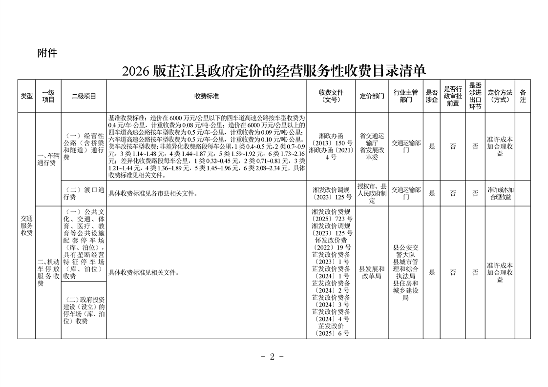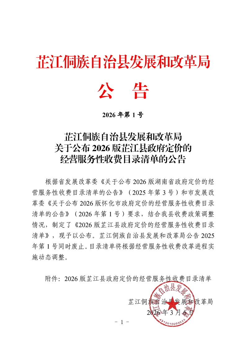 芷江侗族自治县发展和改革局关于公布2026版芷江县政府定价的经营服务性收费目录清单的公告