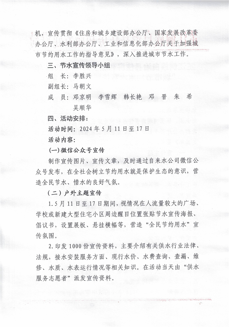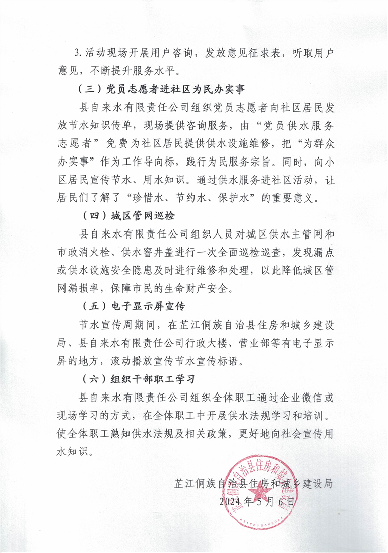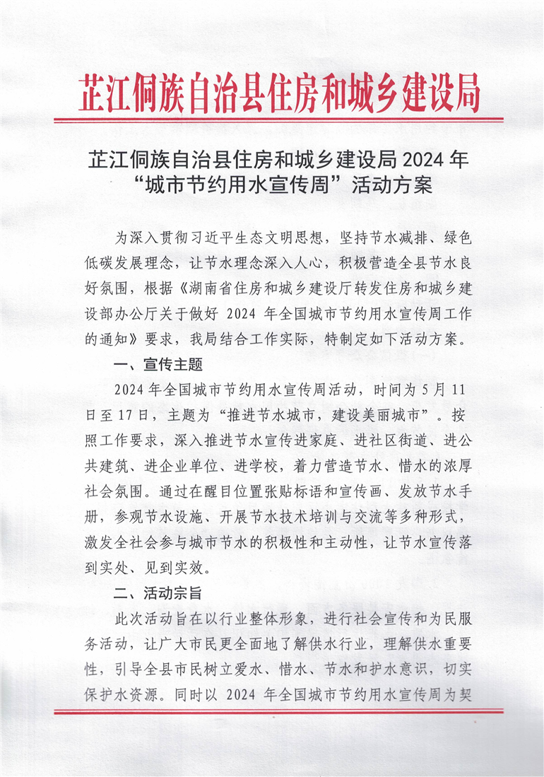 芷江侗族自治县住房和城乡建设局2024年“城市节约用水宣传周”活动方案