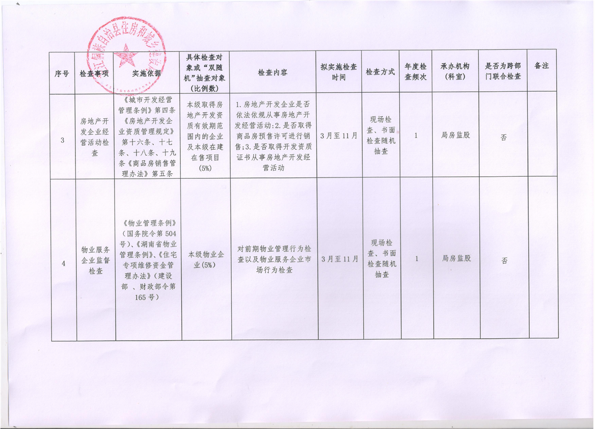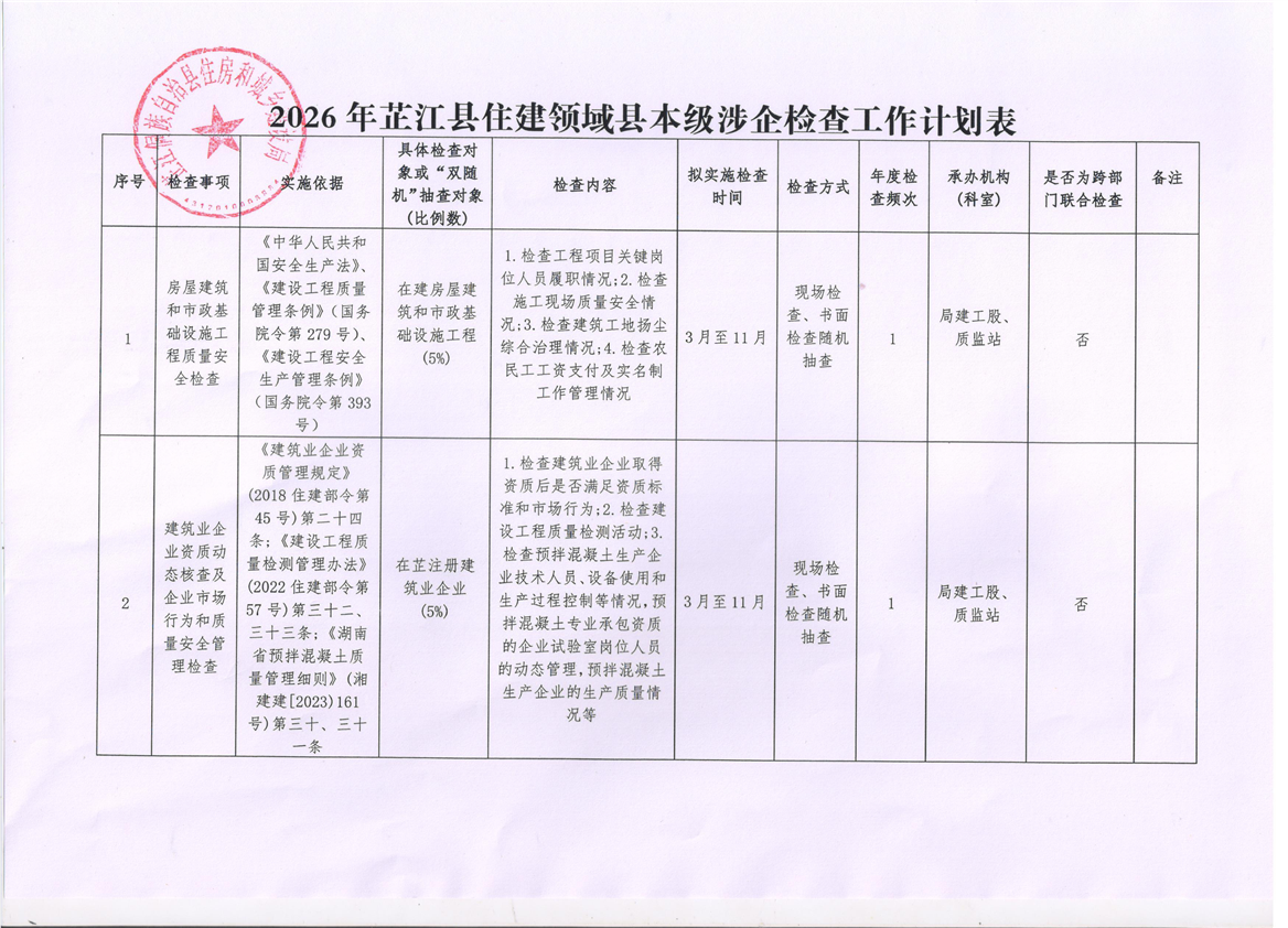 2026年芷江县住建领域县本级涉企检查工作计划
