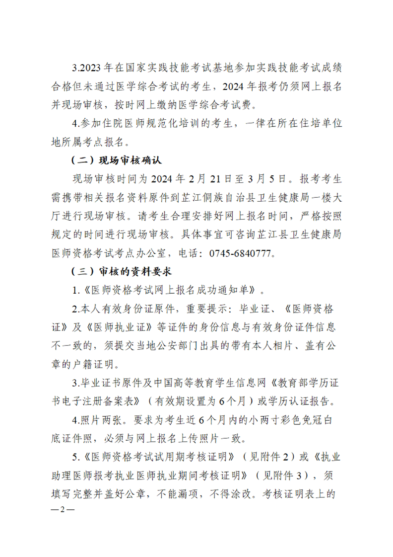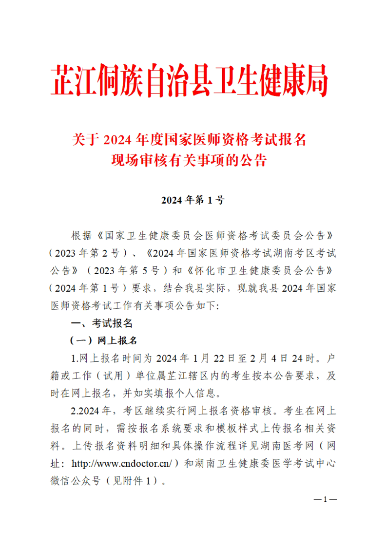 芷江侗族自治县卫生健康局关于2024年度国家医师资格考试报名现场审核有关事项的公告