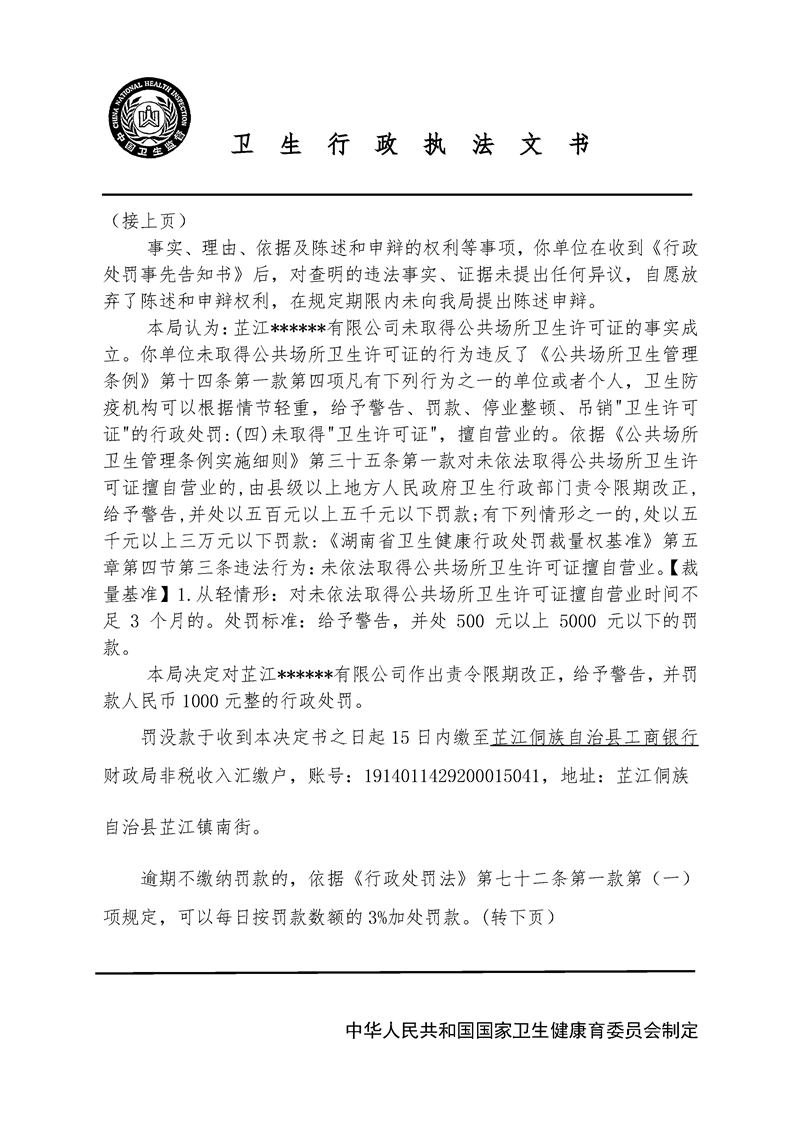 芷江侗族自治县卫生健康局行政处罚决定书---芷卫公罚〔2025〕001号