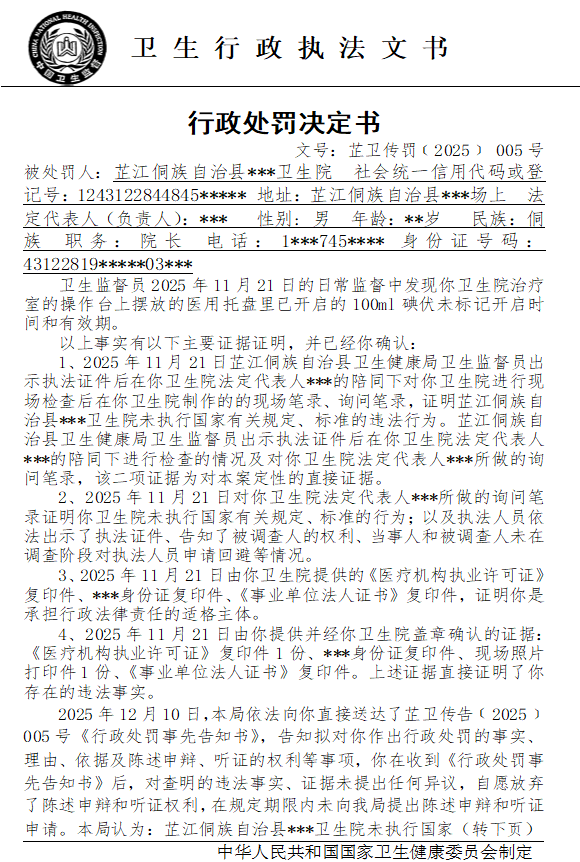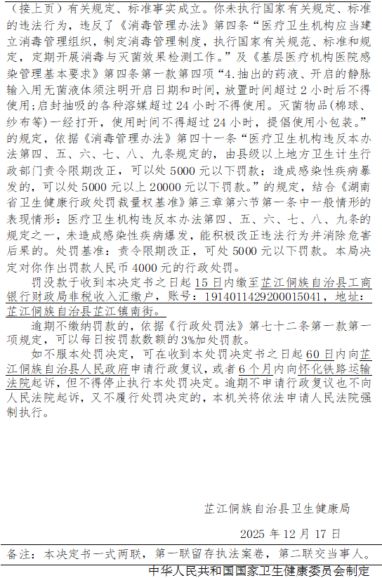 芷江侗族自治县卫生健康局行政处罚决定书---芷卫传罚﹝2025﹞005号