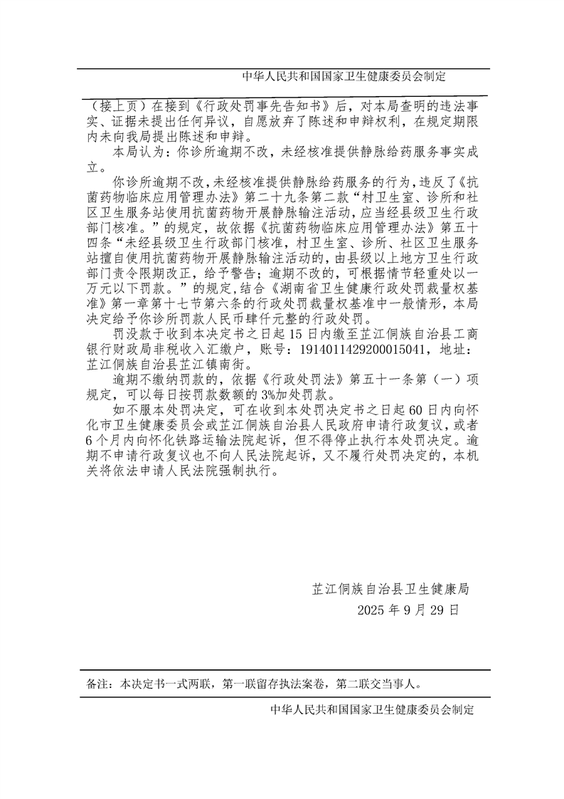芷江侗族自治县卫生健康局行政处罚决定书---芷卫医罚〔2025〕014号