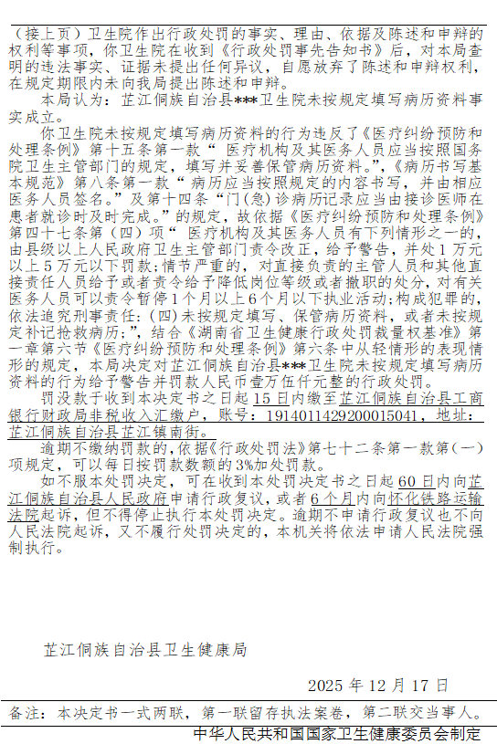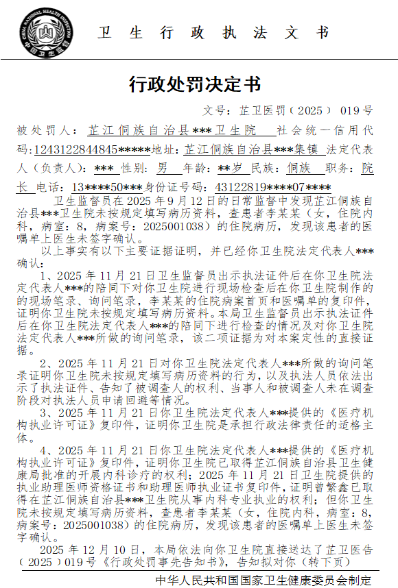 芷江侗族自治县卫生健康局行政处罚决定书---芷卫医罚﹝2025﹞019号