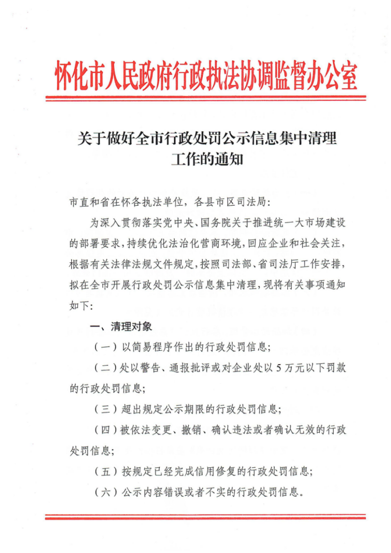 关于做好全市行政处罚公示信息集中清理工作的通知 (1)