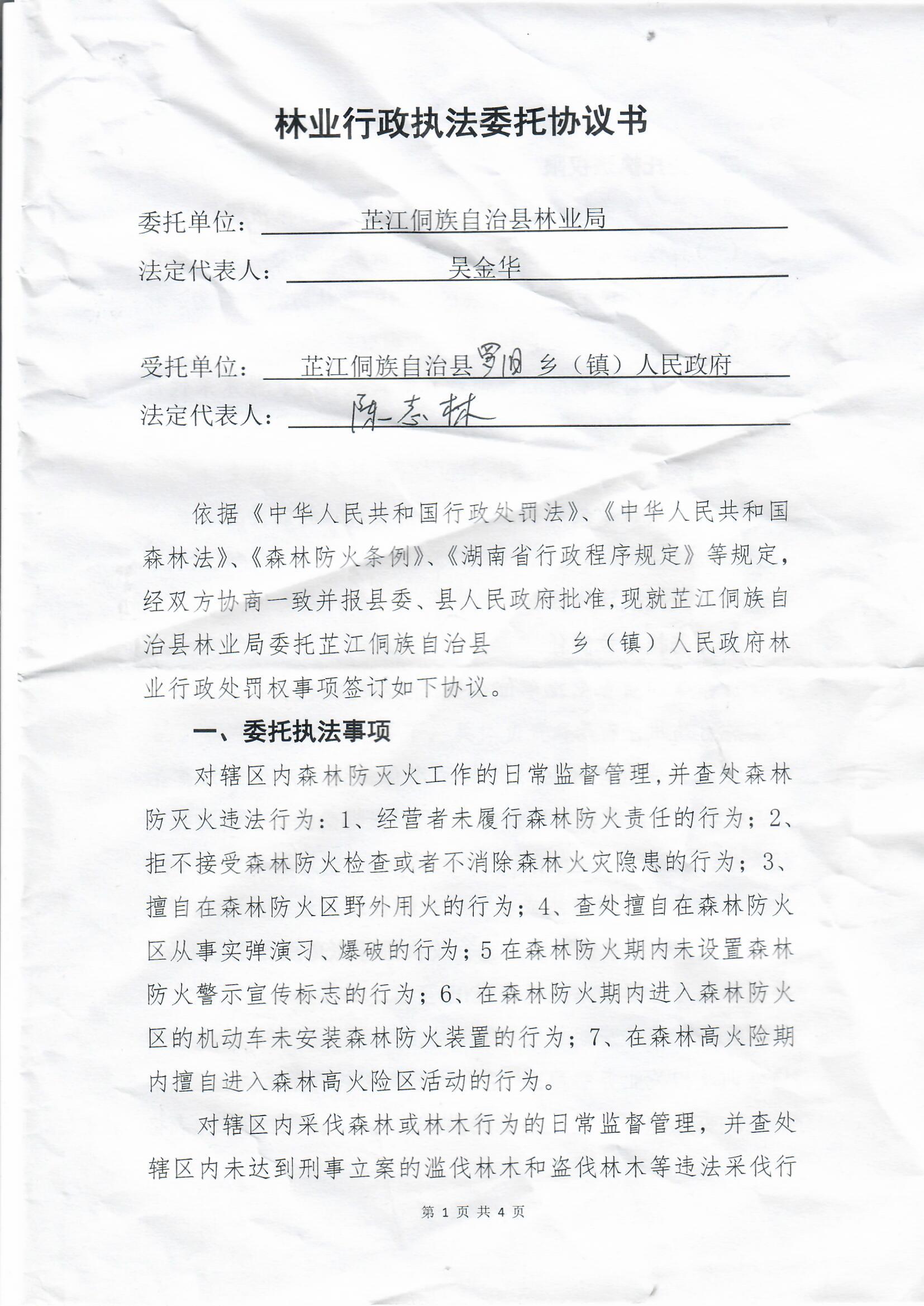 林业行执法委托协议书