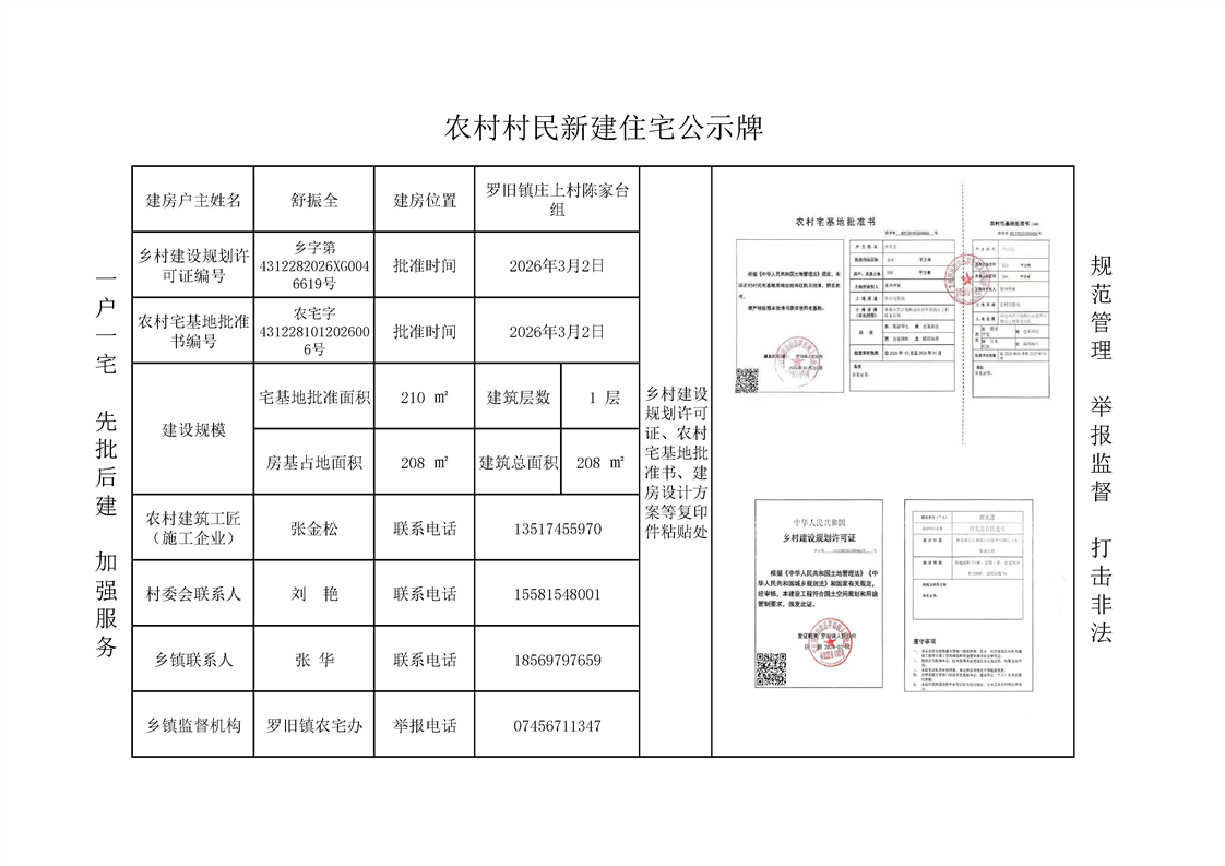 农村村民新建住宅公示牌-庄上村陈家台组-舒振全