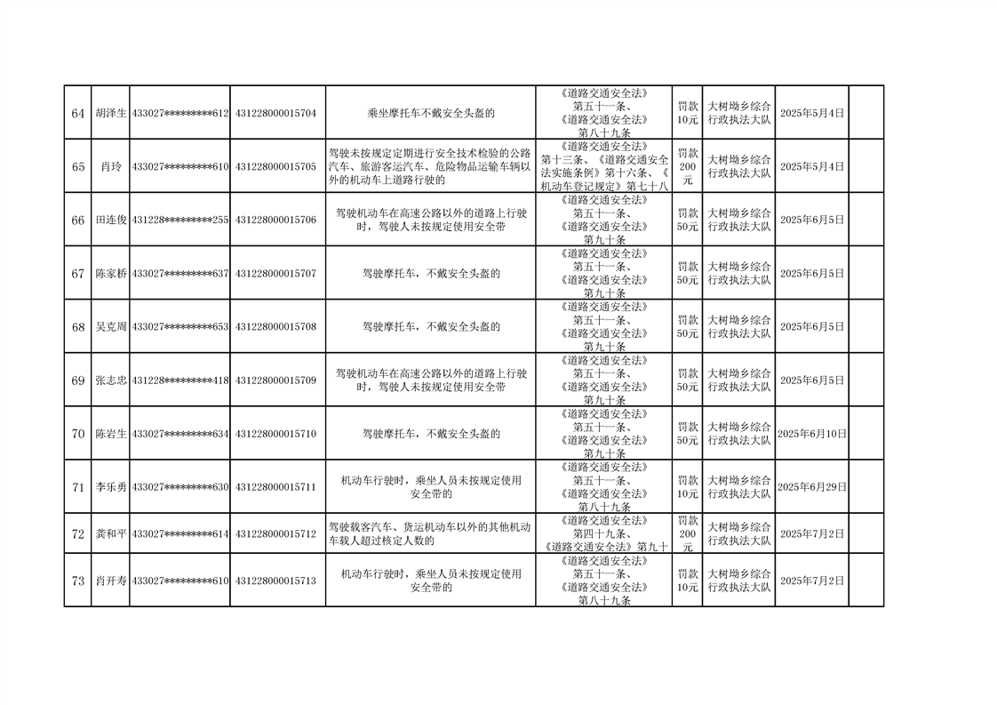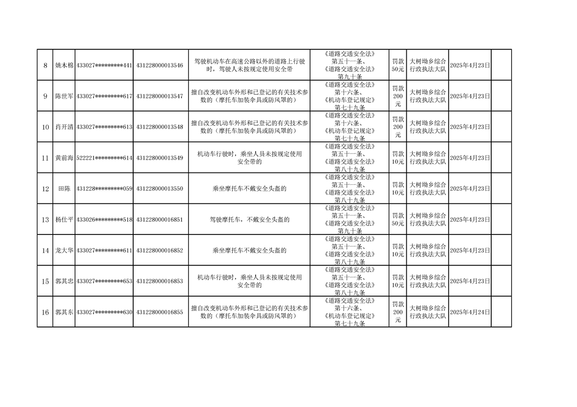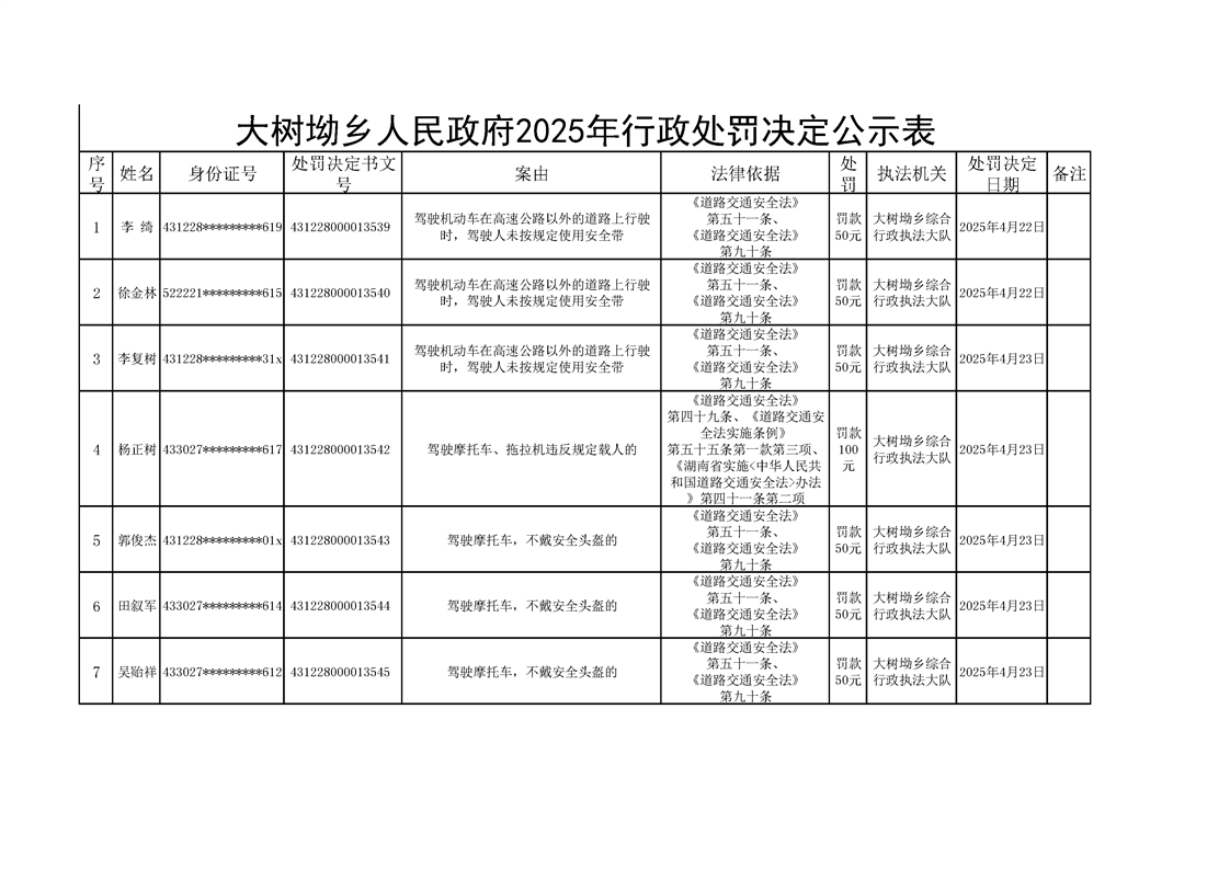 大树坳乡人民政府2025年行政处罚决定公示表