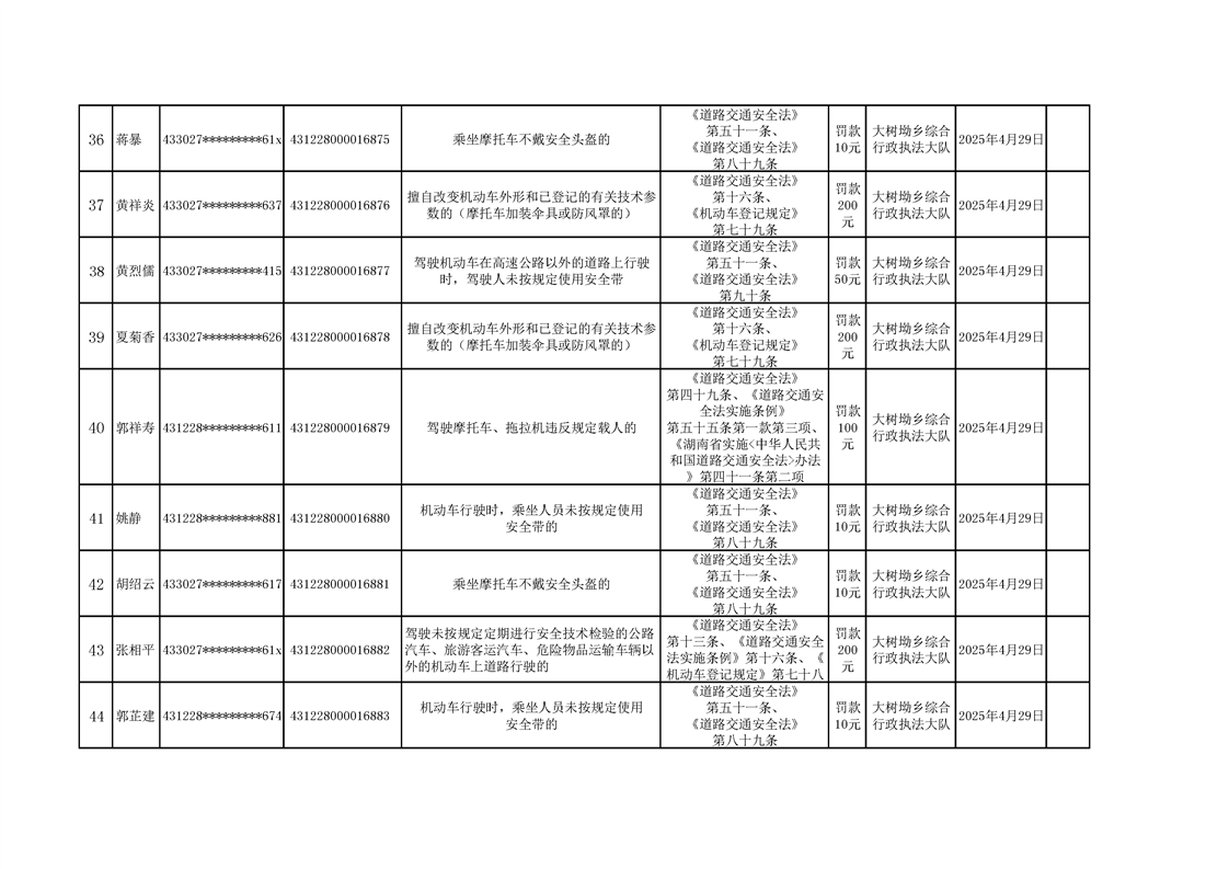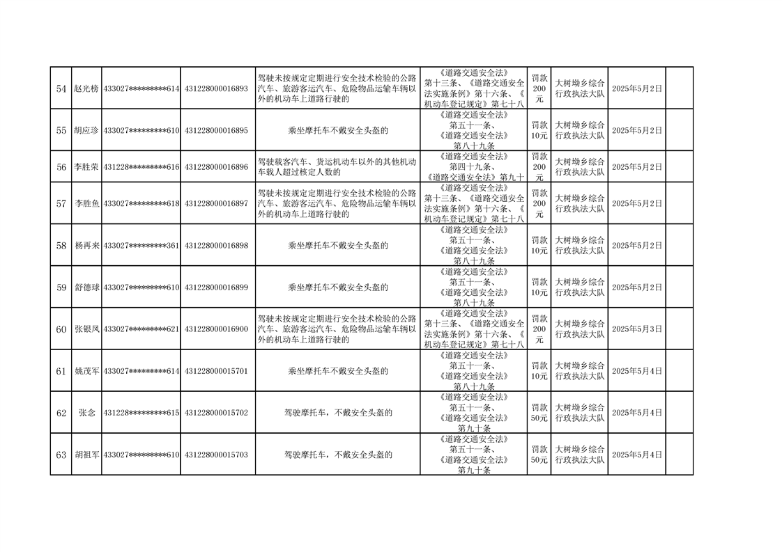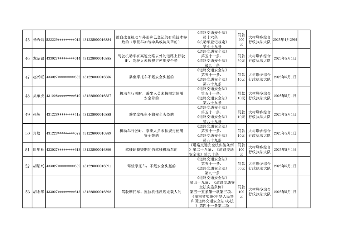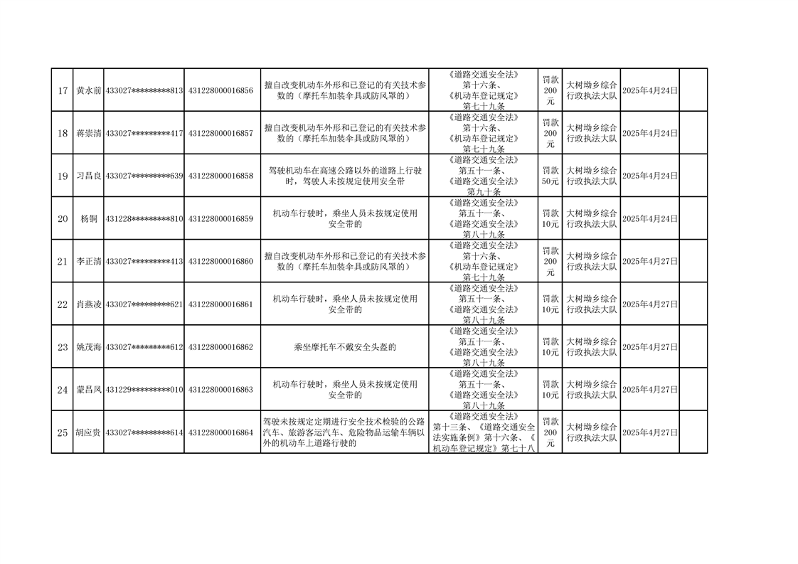 大树坳乡人民政府2025年行政处罚决定公示表