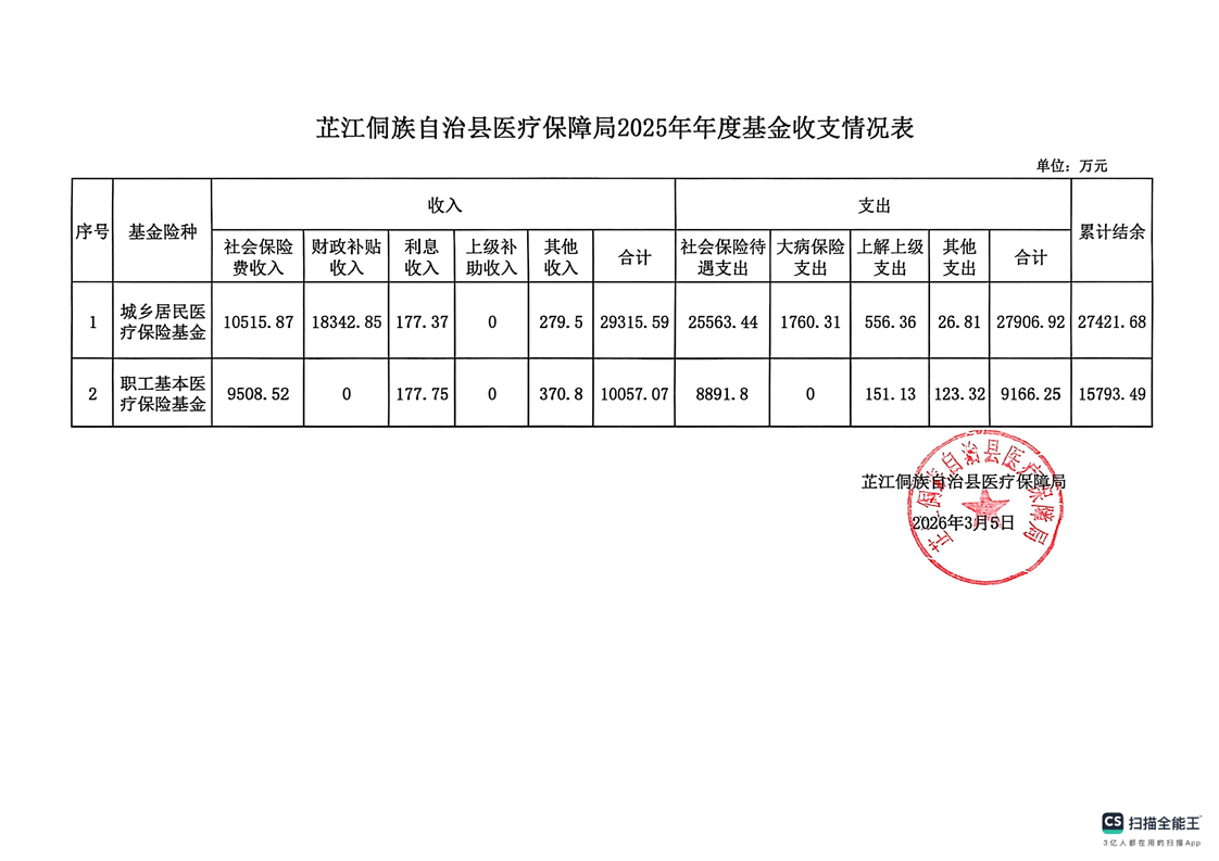 医疗保障局2025年年度基金收支情况