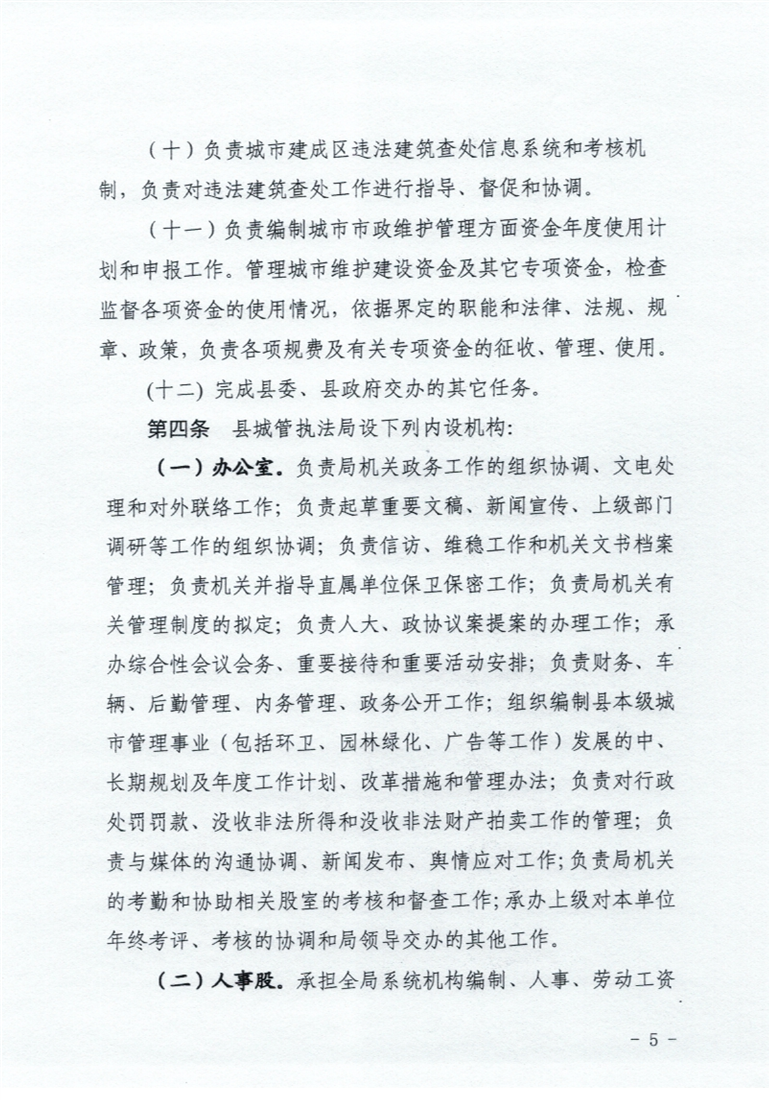 (一)办公室(主任:向昌群 联系电话:13272274751)负责局机关政务工作的组织协调、文电处理和对外联络工作;负责起草重要文稿、新闻宣传、上级部门调研等工作的组织协调;负责信访、维稳工作和机关文书档案管理;负责机关并指导直属单位保卫保密工作;负责局机关有关管理制度的拟定;负责人大、政协议案提案的办理工作;承办综合性会议会务、重要接待和重要活动安排;负责财务、车辆、后勤管理、内务管理、政务公开工作;组织编制县本级城市管理事业(包括环卫、园林绿化、广告等工作)发展的中、长期规划及年度工作计划、改革措施和管理办法;负责对行政处罚罚款、没收非法所得和没收非法财产拍卖工作的管理;负责与媒体的沟通协调、新闻发布、舆情应对工作;负责局机关的考勤和协助相关股室的考核和督查工作;承办上级对本单位年终考评、考核的协调和局领导交办的其他工作。