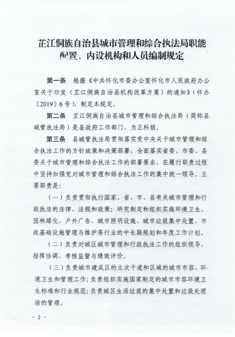 芷江侗族自治县城市管理综合执法局机构职能