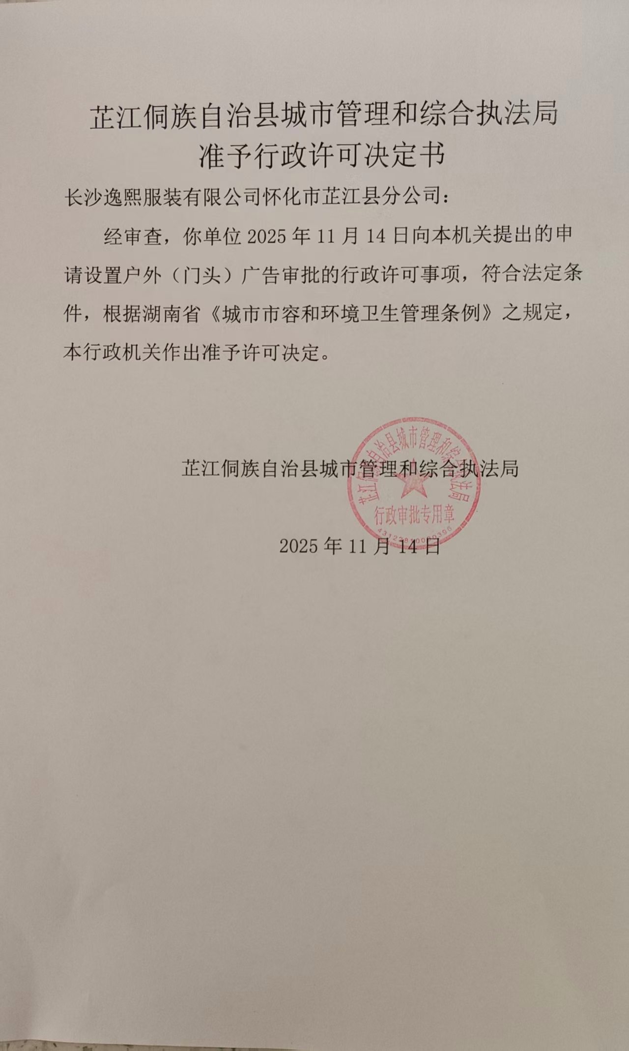 芷江侗族自治县城市管理和综合执法局准予行政许可决定书