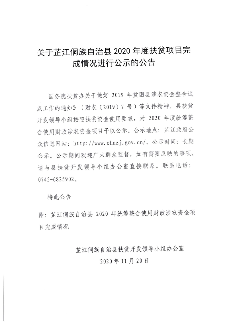 关于芷江侗族自治县2020年度扶贫项目完成情况进行公示的公告