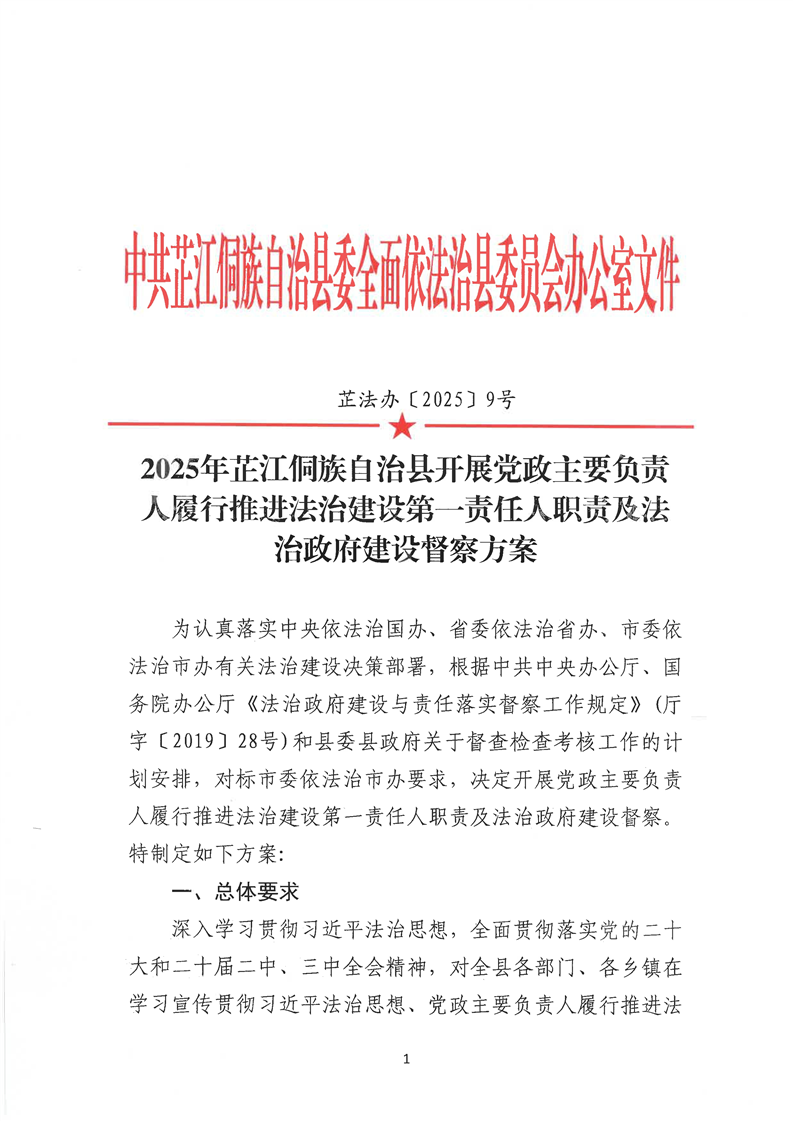 2025年芷江侗族自治县开展党政主要负责人履行推进法治建设第一责任人职责及法治政府建设督察方案