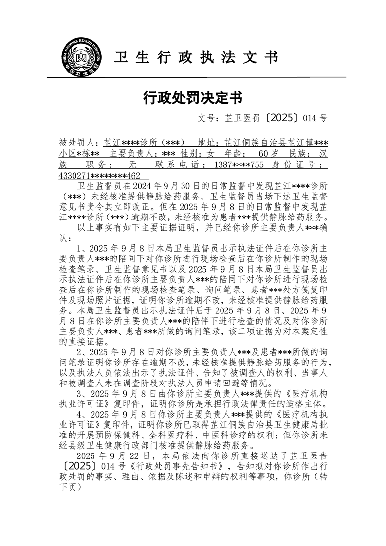 芷江侗族自治县卫生健康局行政处罚决定书---芷卫医罚〔2025〕014号