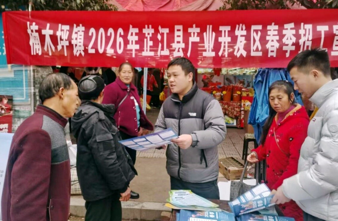 2月12日,恰逢年前赶集日,楠木坪镇紧扣芷江产业开发区2026年春季用工需求,抢抓春节务工人员返乡关键节点,在镇集市热闹地段开展春季招工宣传活动。
