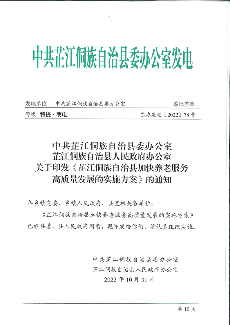 芷江县加快养老服务高质量发展实施方案