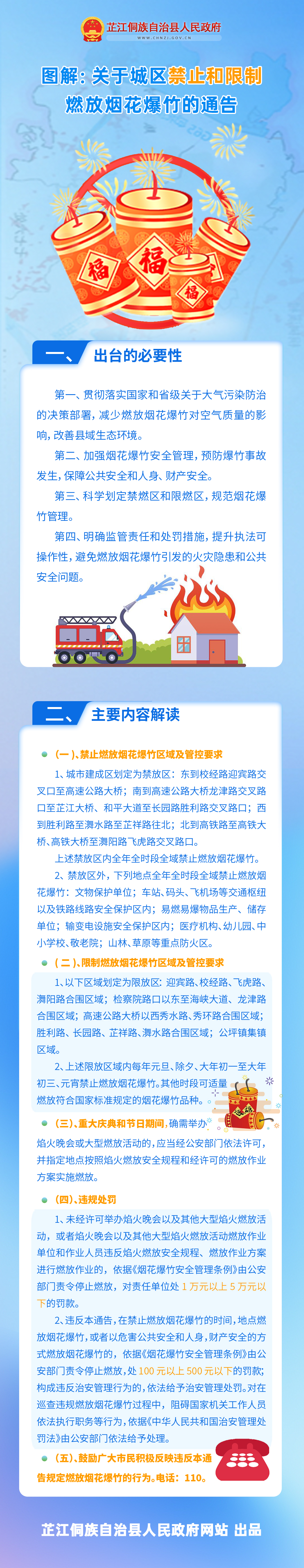 图解:关于芷江侗族自治县城区禁止和限制燃放烟花爆竹的通告 芷江侗族自治县人民政府 发布时间: 2025-12-25 09:06 征求意见稿解读 芷江侗族自治县人民政府关于城区禁止和限制燃放烟花爆竹的通告 芷江侗族自治县人民政府关于制定《关于芷江侗族自治县城区禁止和限制燃放烟花爆竹的通告》的解读 音频解读:关于芷江侗族自治县城区禁止和限制燃放烟花爆竹的通告 分享到 打印 来源:芷江县人民政府